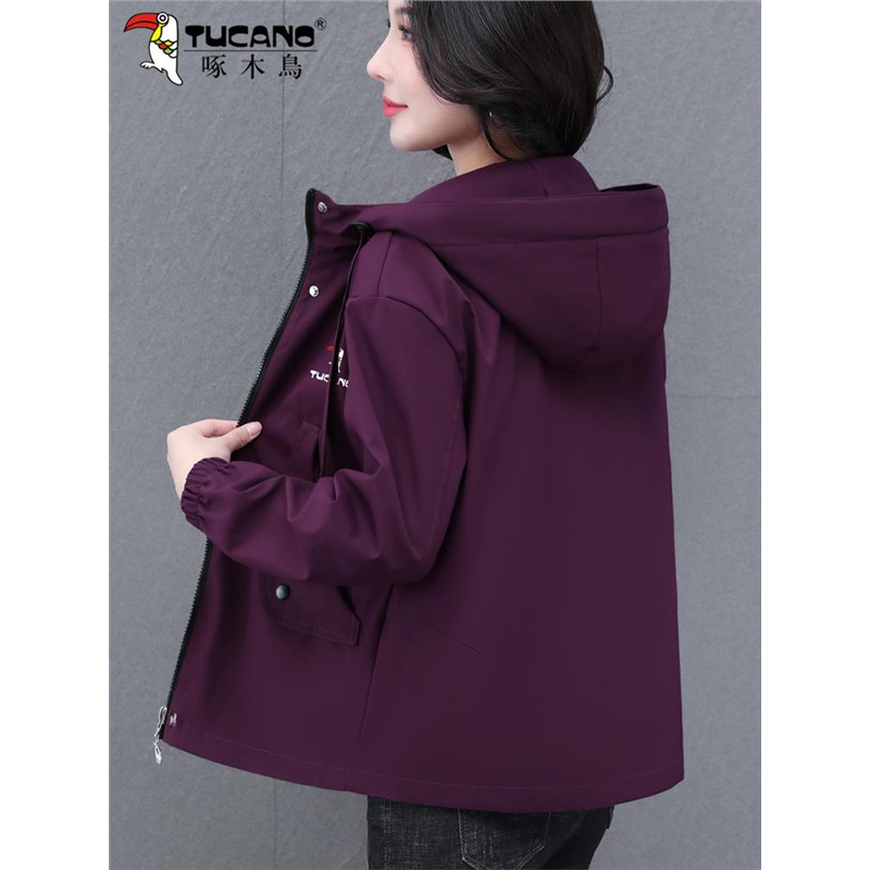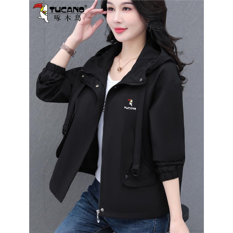 啄木鸟短款女士外套2025新款春秋季洋气中年妈妈风衣宽松连帽夹克