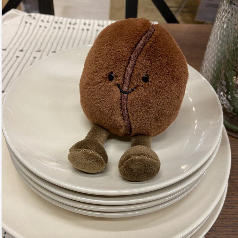 创意微笑咖啡豆公仔玩偶毛绒玩具迷你可爱豆子咖啡店装饰解压礼物