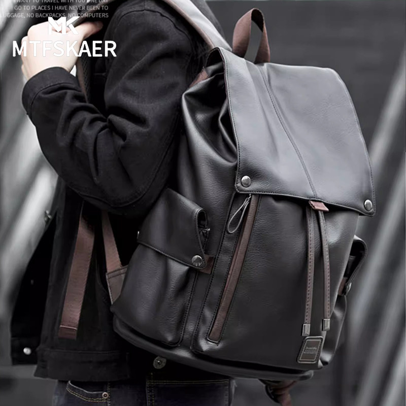 MTFSKAER真皮背包双肩包男士大容量软皮旅行包商务电脑包学生书包