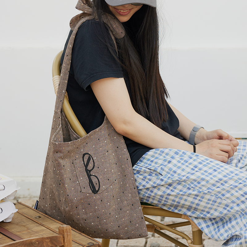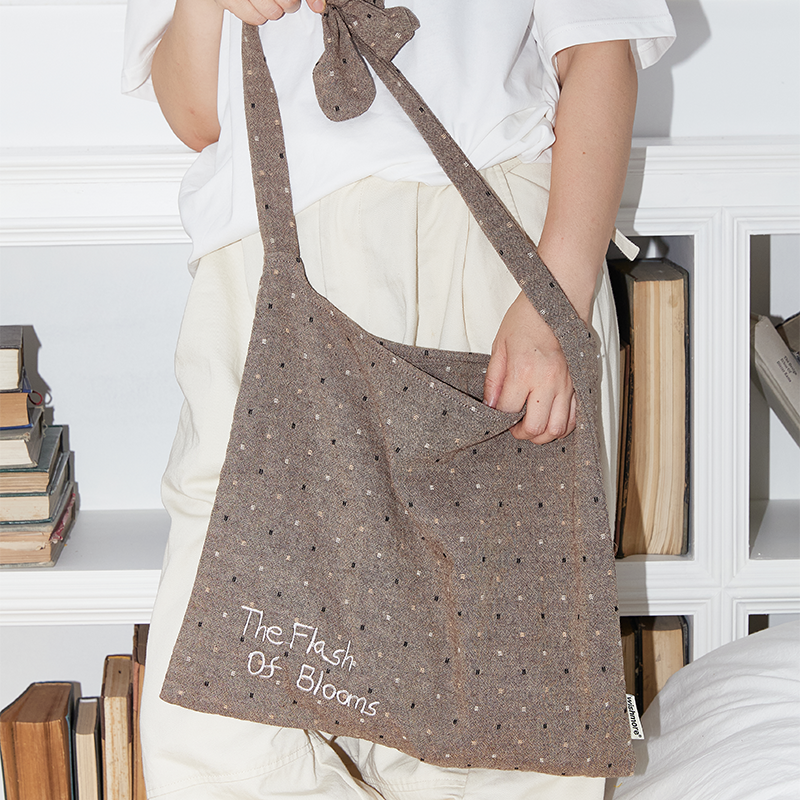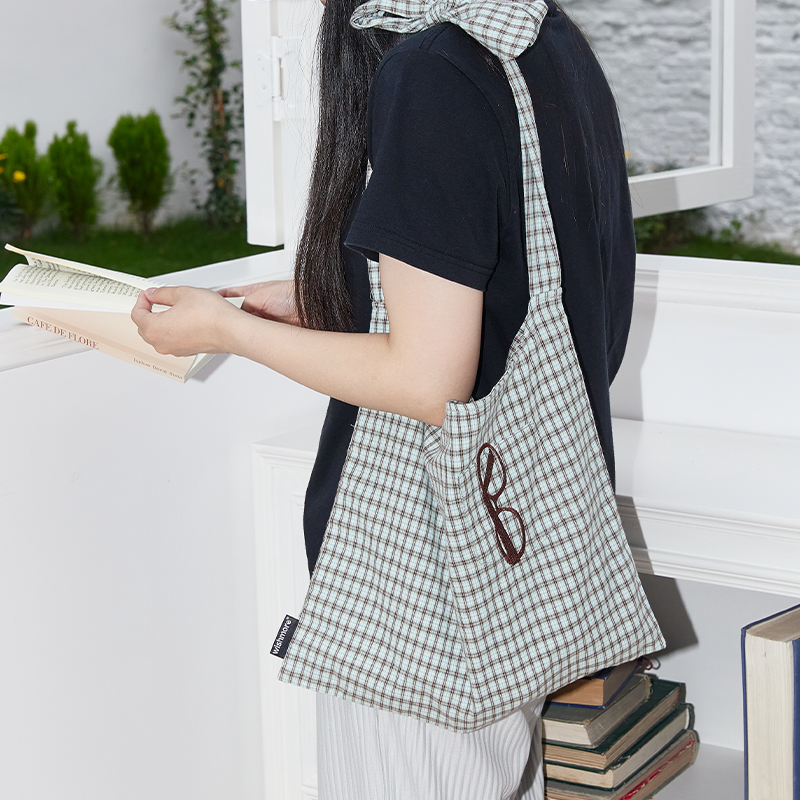 wishmore复古格子口袋斜挎包百搭格纹单肩手提通勤大容量帆布包女