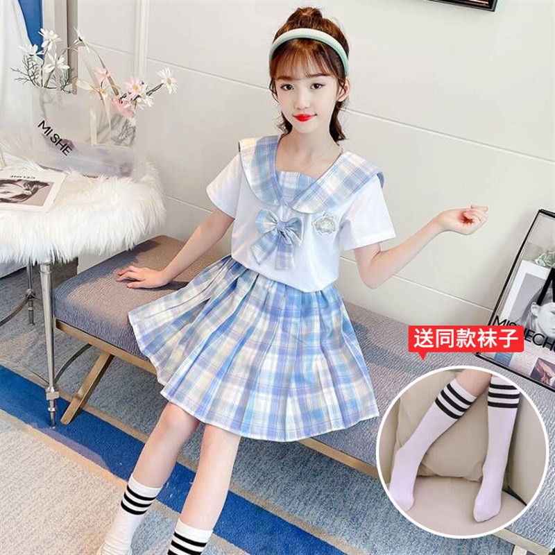 女童连衣裙夏季2023新款儿童女大童夏装夏天衣服学院风jk裙子套装