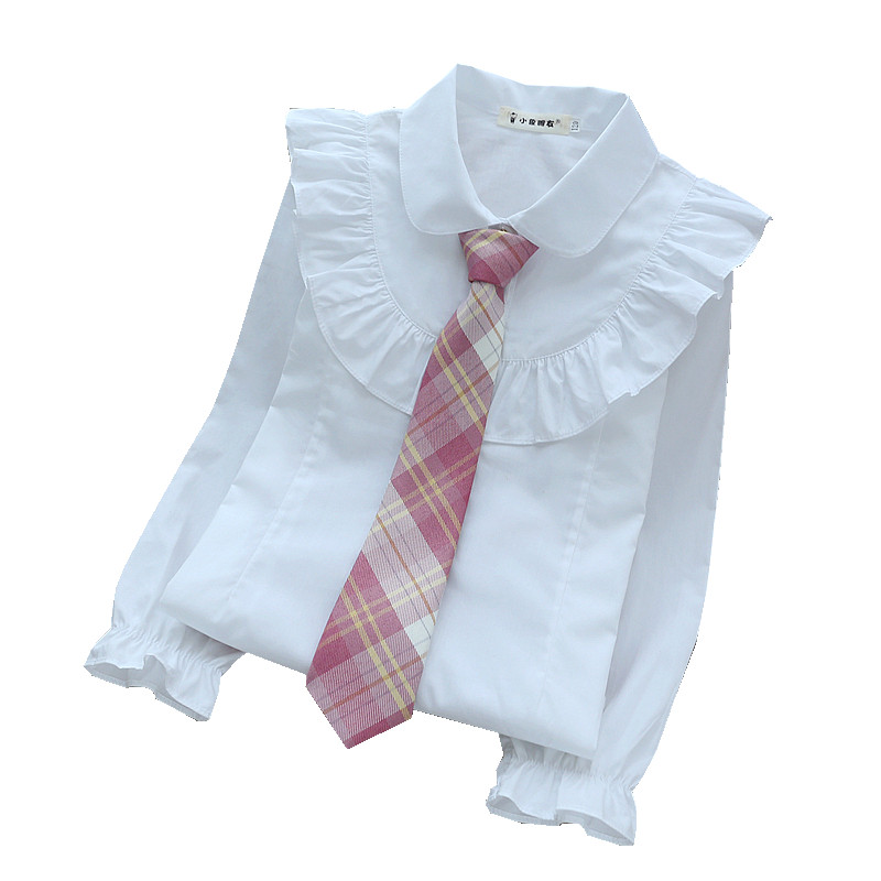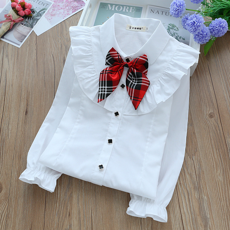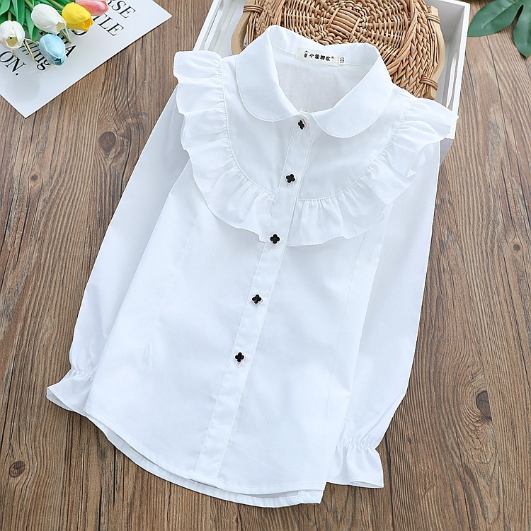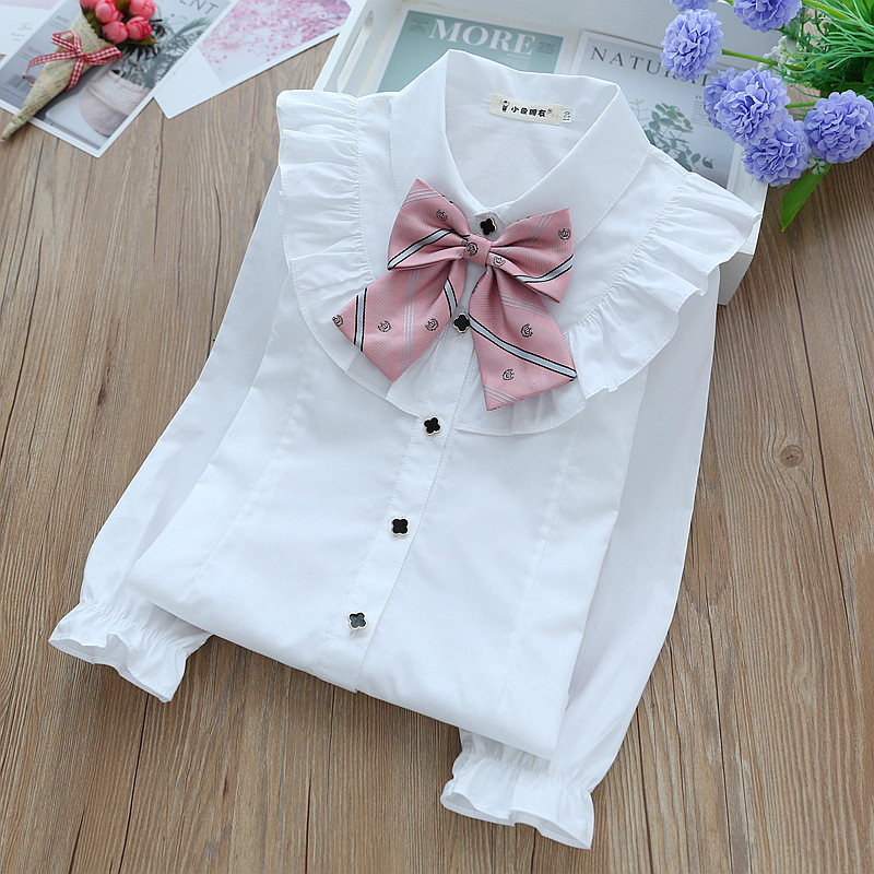 女童衬衫长袖中大童洋气白衬衣翻领纯棉宝宝上衣裙韩版演出服春秋
