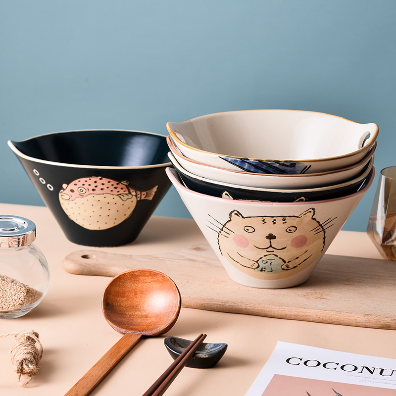 日式斗笠高碗面碗单个陶瓷创意家用大号吃面拉面碗一人食餐具套装