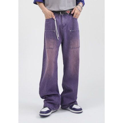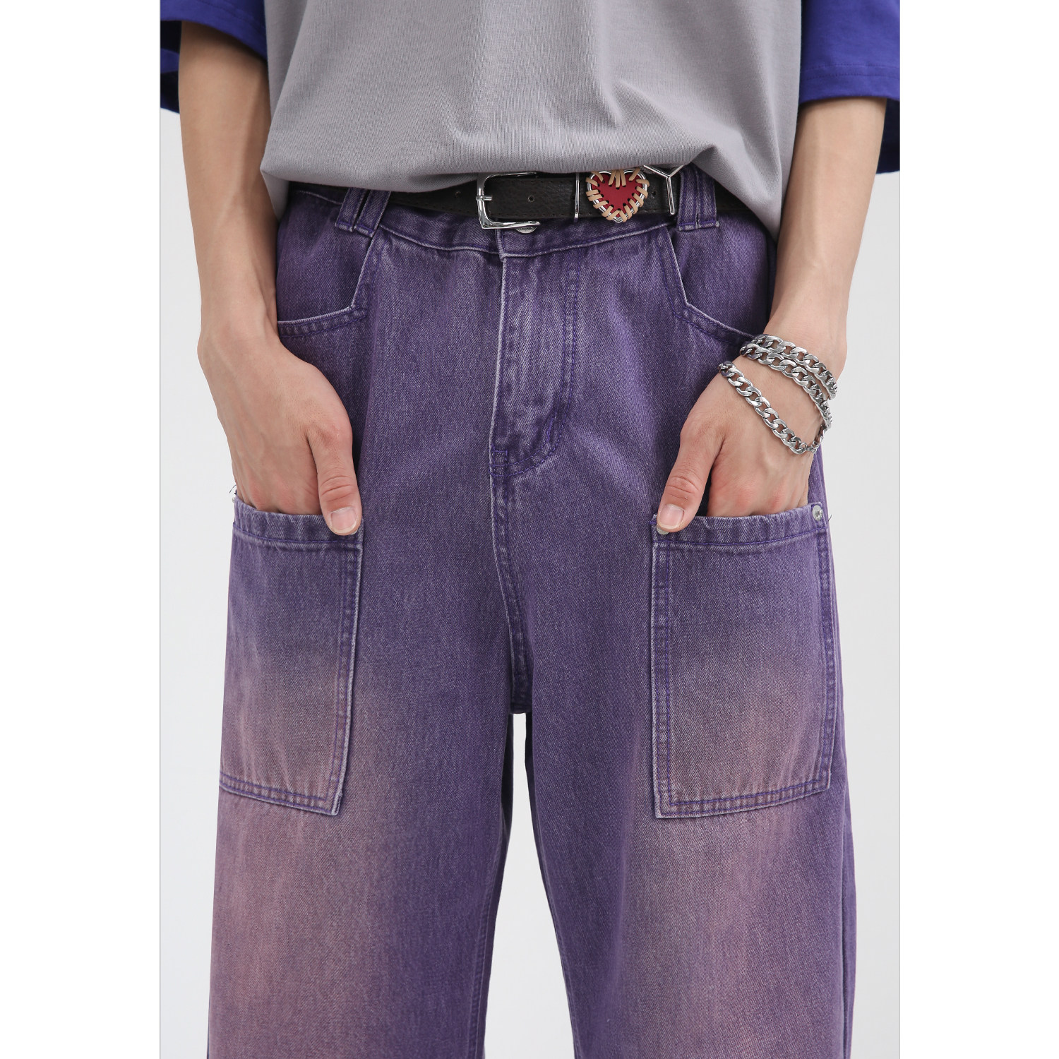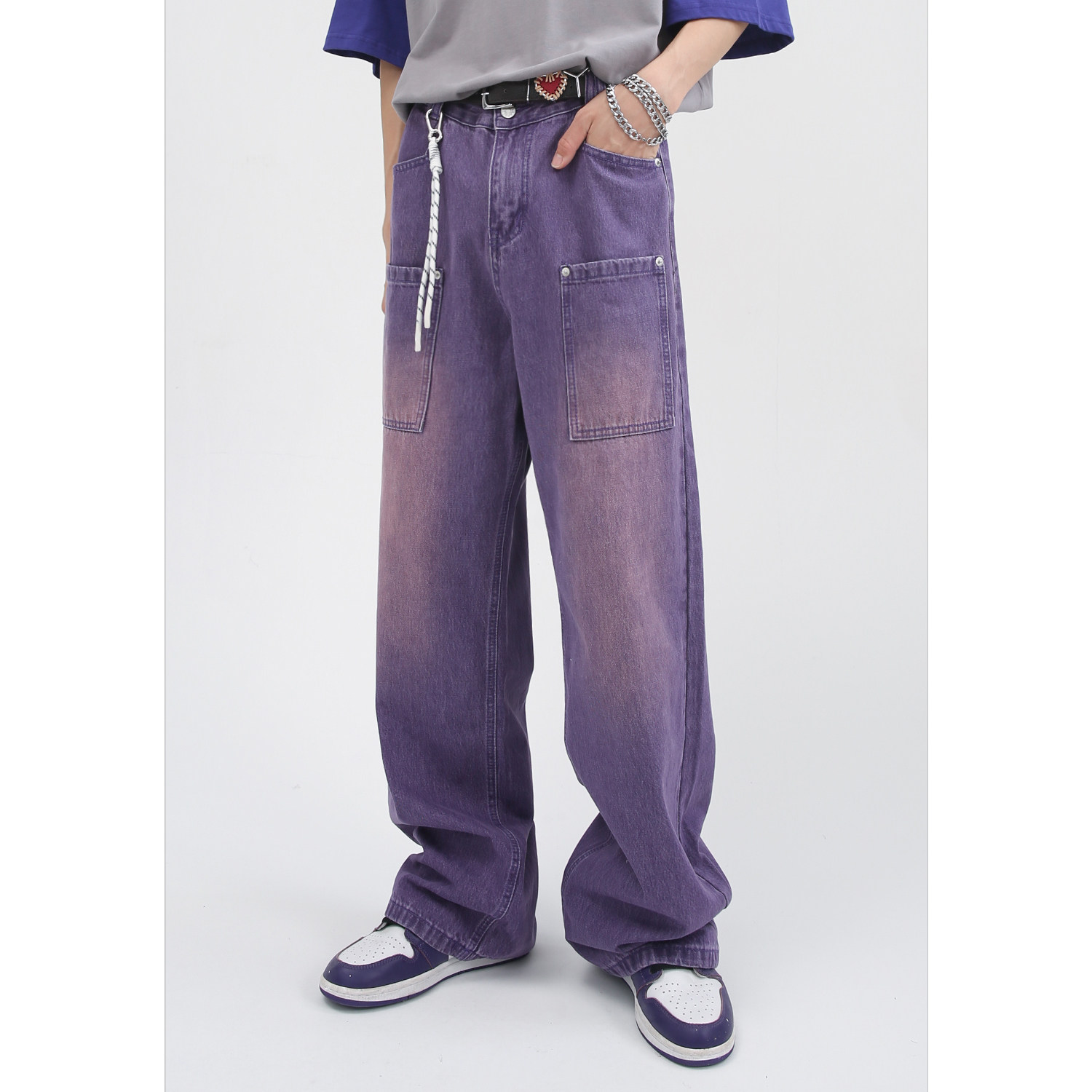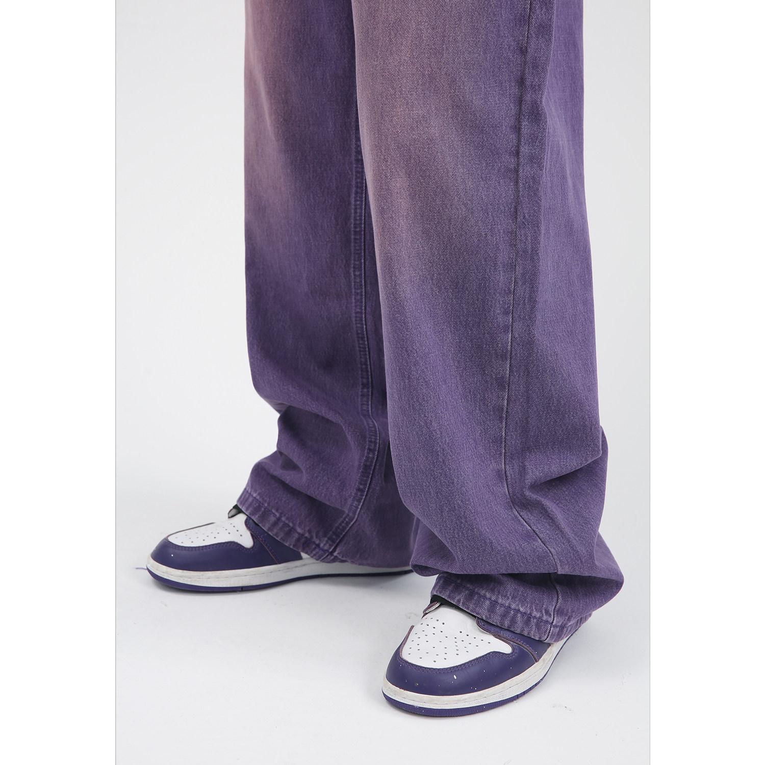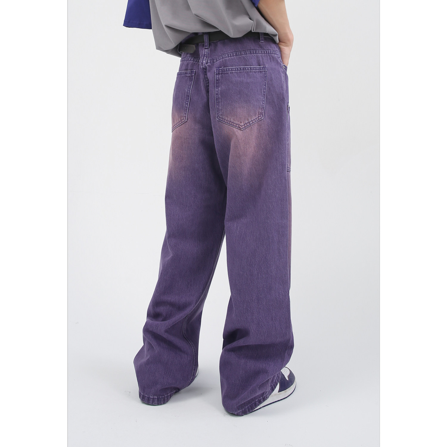 Voguo Relay 韩版原创新品设计感宽松直筒紫色牛仔裤男女阔腿裤
