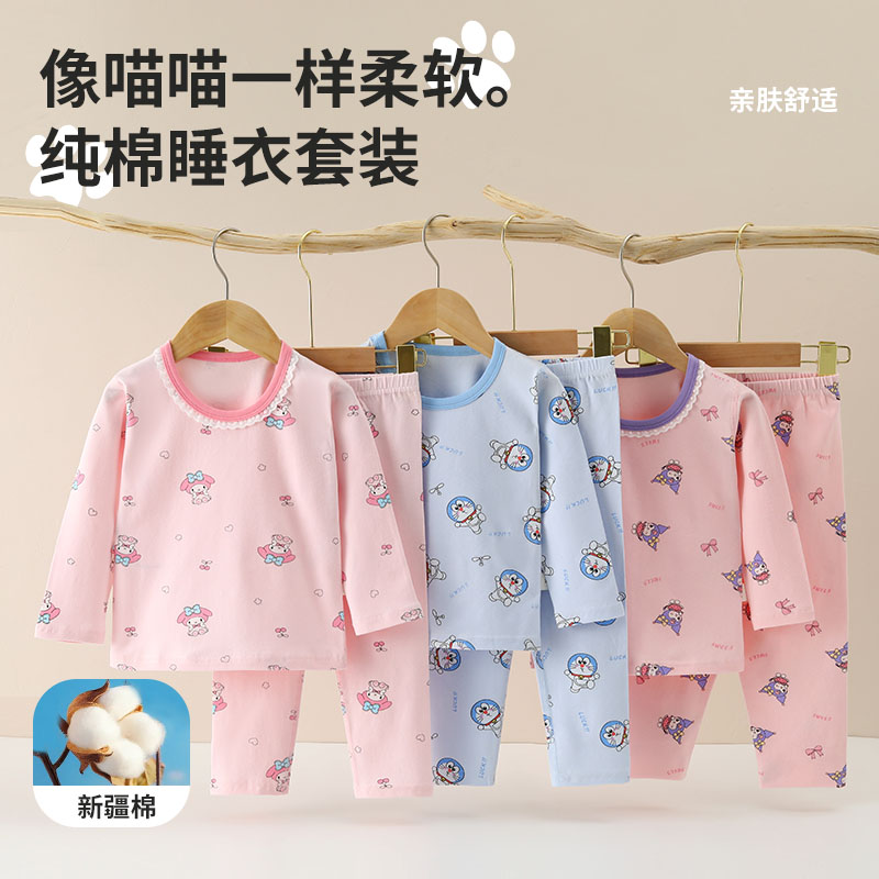 女童秋衣秋裤套装莱卡棉纯棉a类中小童男童内衣全棉宝宝儿童睡衣