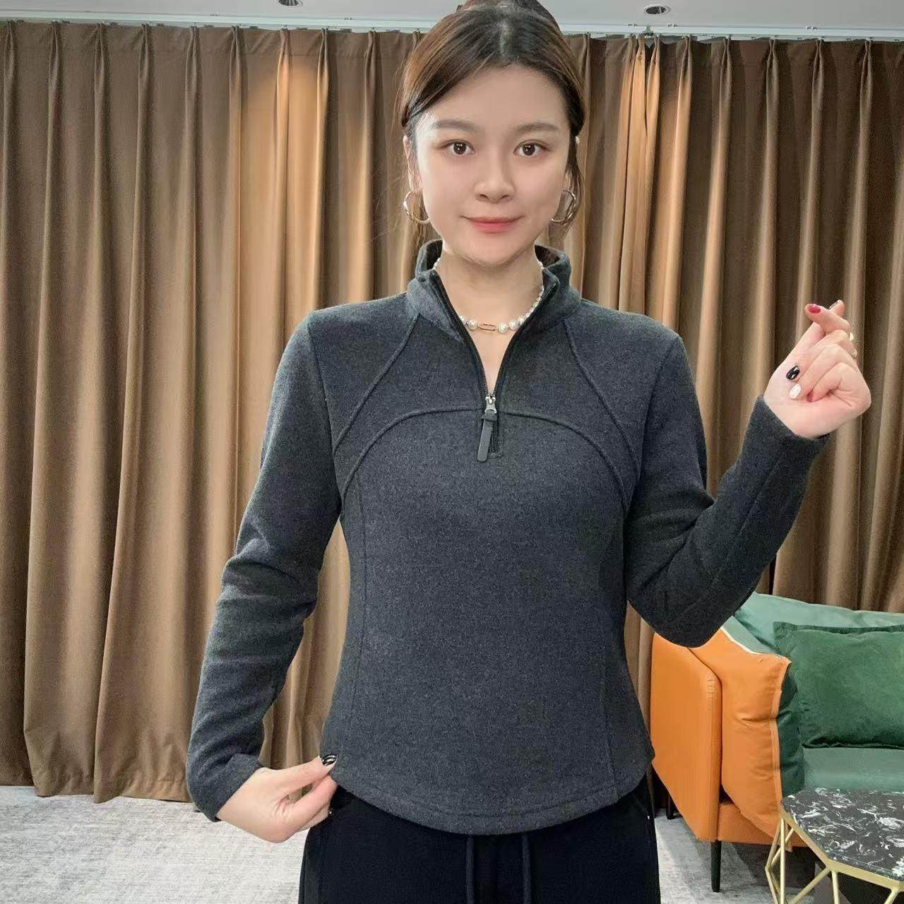 半拉链加绒加厚显瘦上衣减龄运动休闲长袖卫衣女简约风保暖打底衫