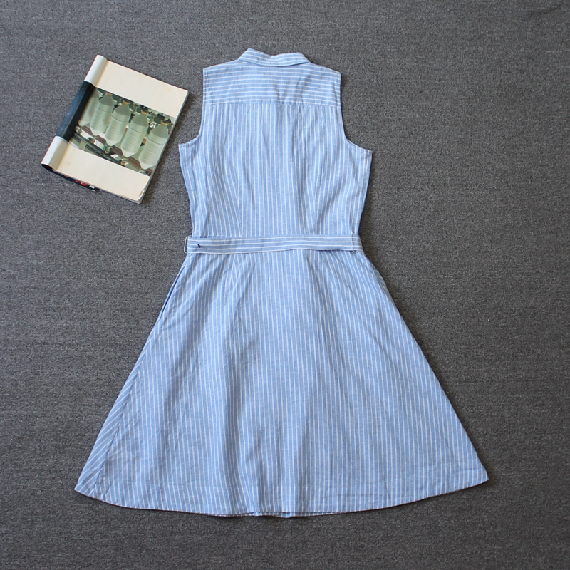 乐福佬仁齐下副线 砖贵撤货 女装 棉麻条纹连衣裙we shi todayD15