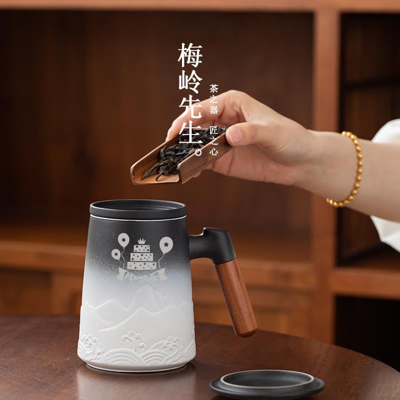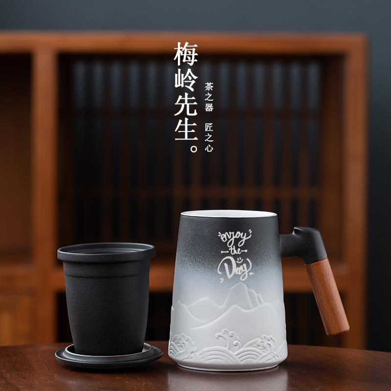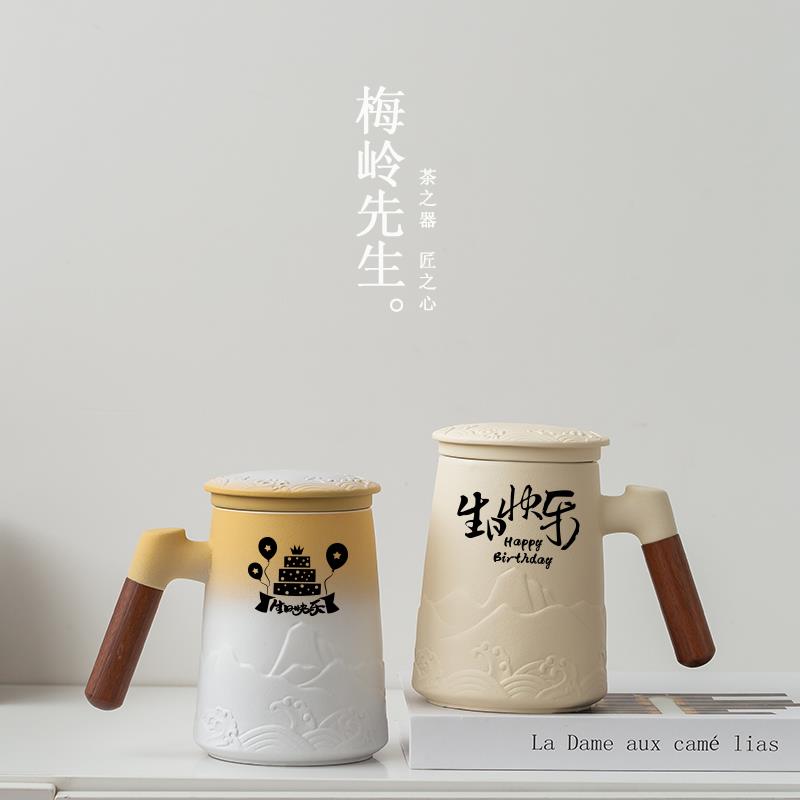 梅岭先生山峦陶瓷马克杯带过滤茶杯生日礼物送礼男女朋友个性定制