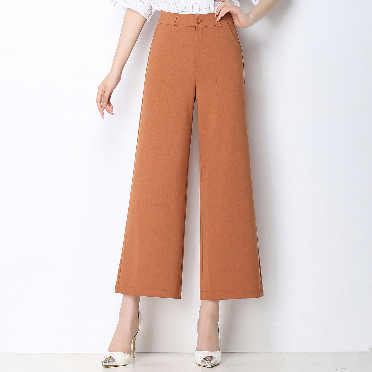 高腰范美姿休闲九分裤阔腿裤