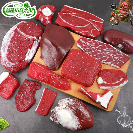 仿真新鲜牛肉生猪肉模型假猪蹄猪肝猪心肉片排骨牛腩猪舌头道具