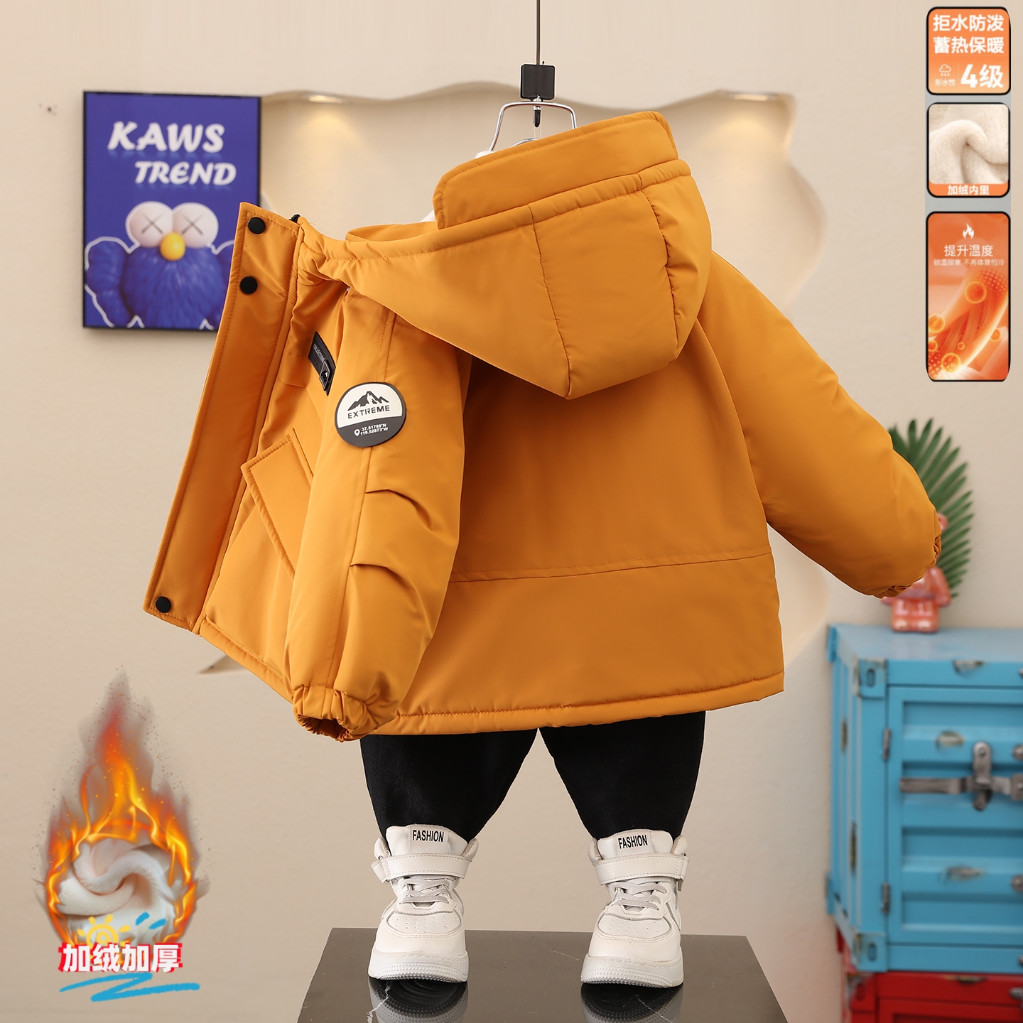 儿童冲锋衣男童加绒外套2025新款户外加厚宝宝冬装男孩棉服派克服