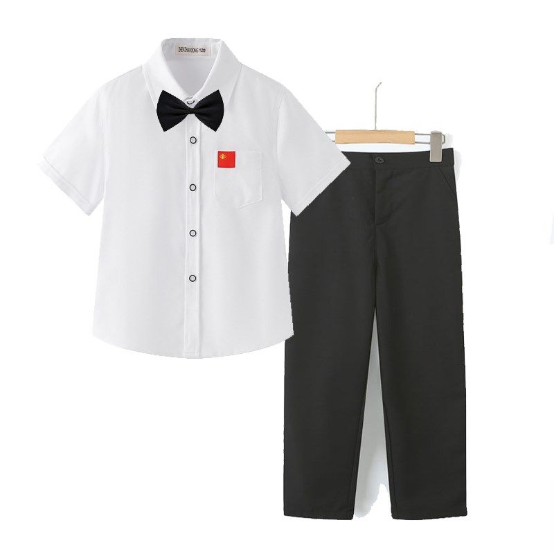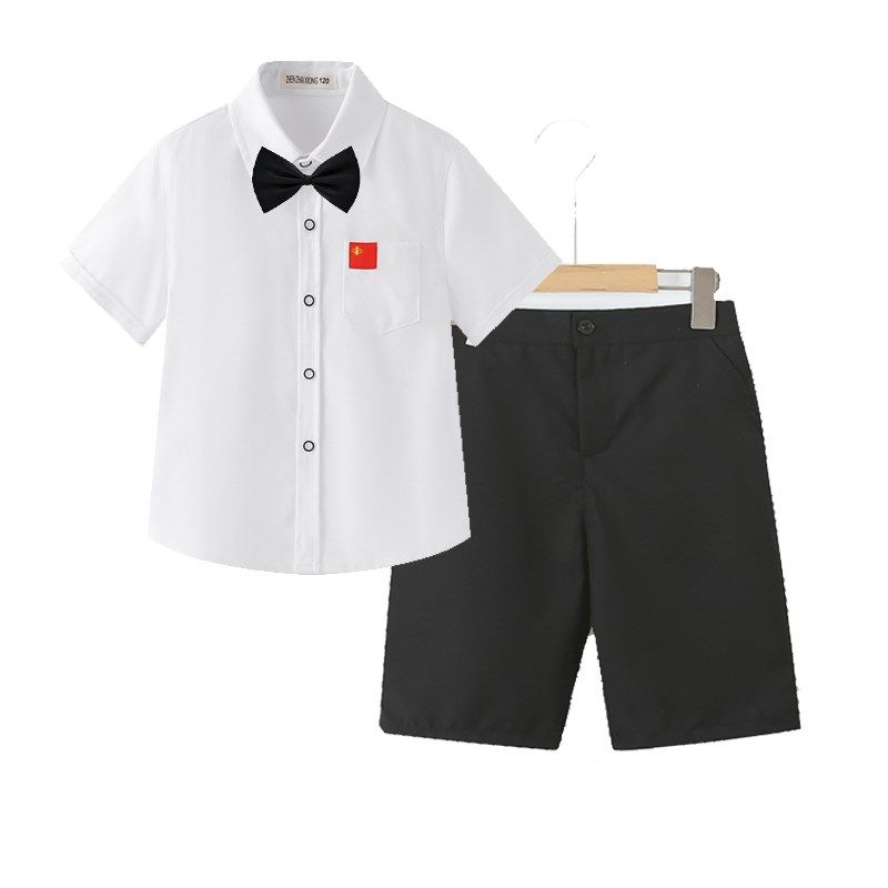 六一儿童节表演服男童白色衬衫短袖短裤中大童小学生表演套装夏季