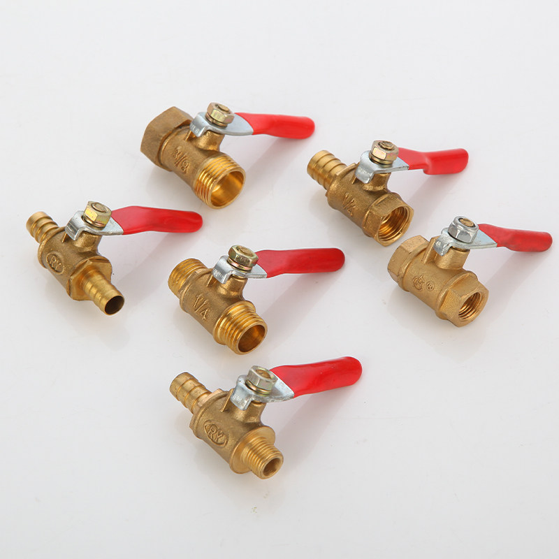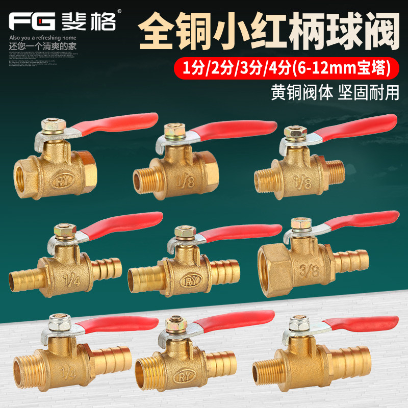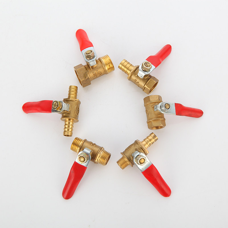 铜球阀1/2/3/4分内外丝插软皮管宝塔小红柄气动气泵阀门开关配件
