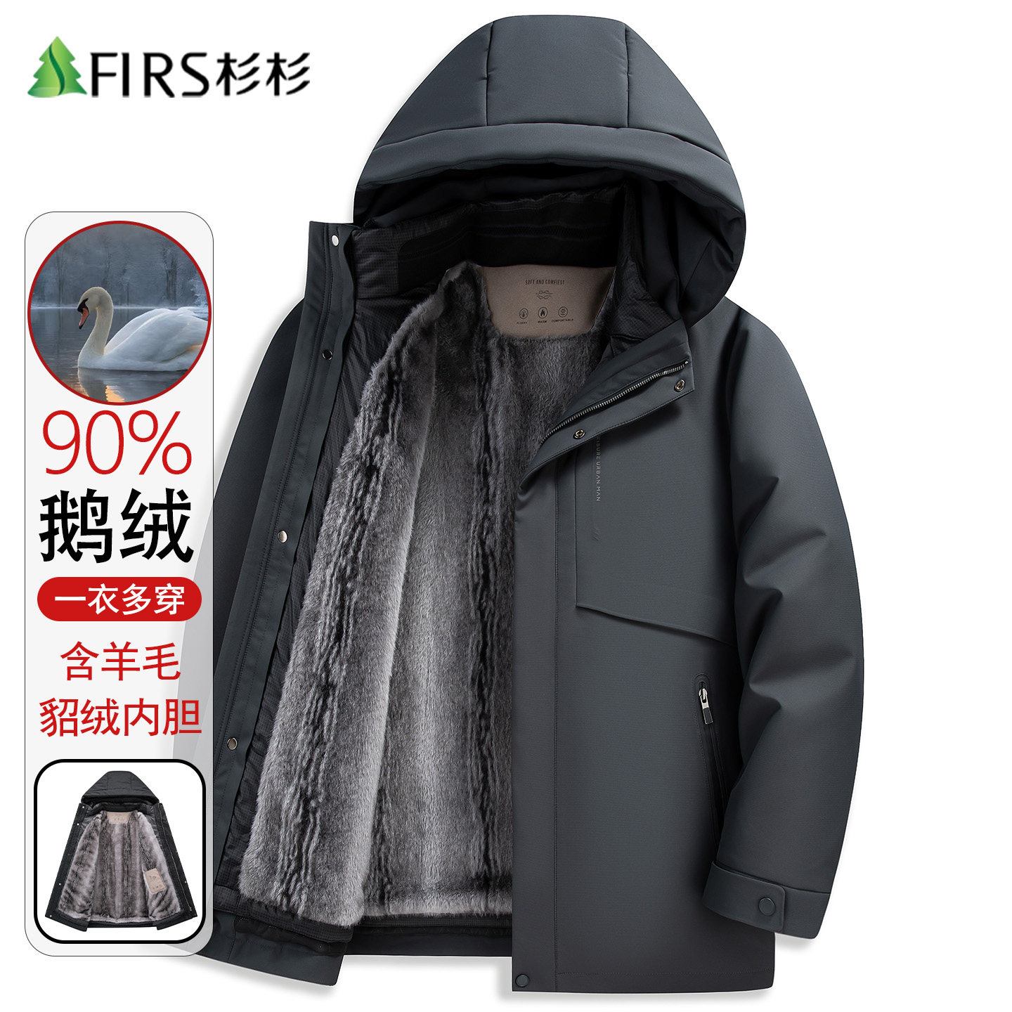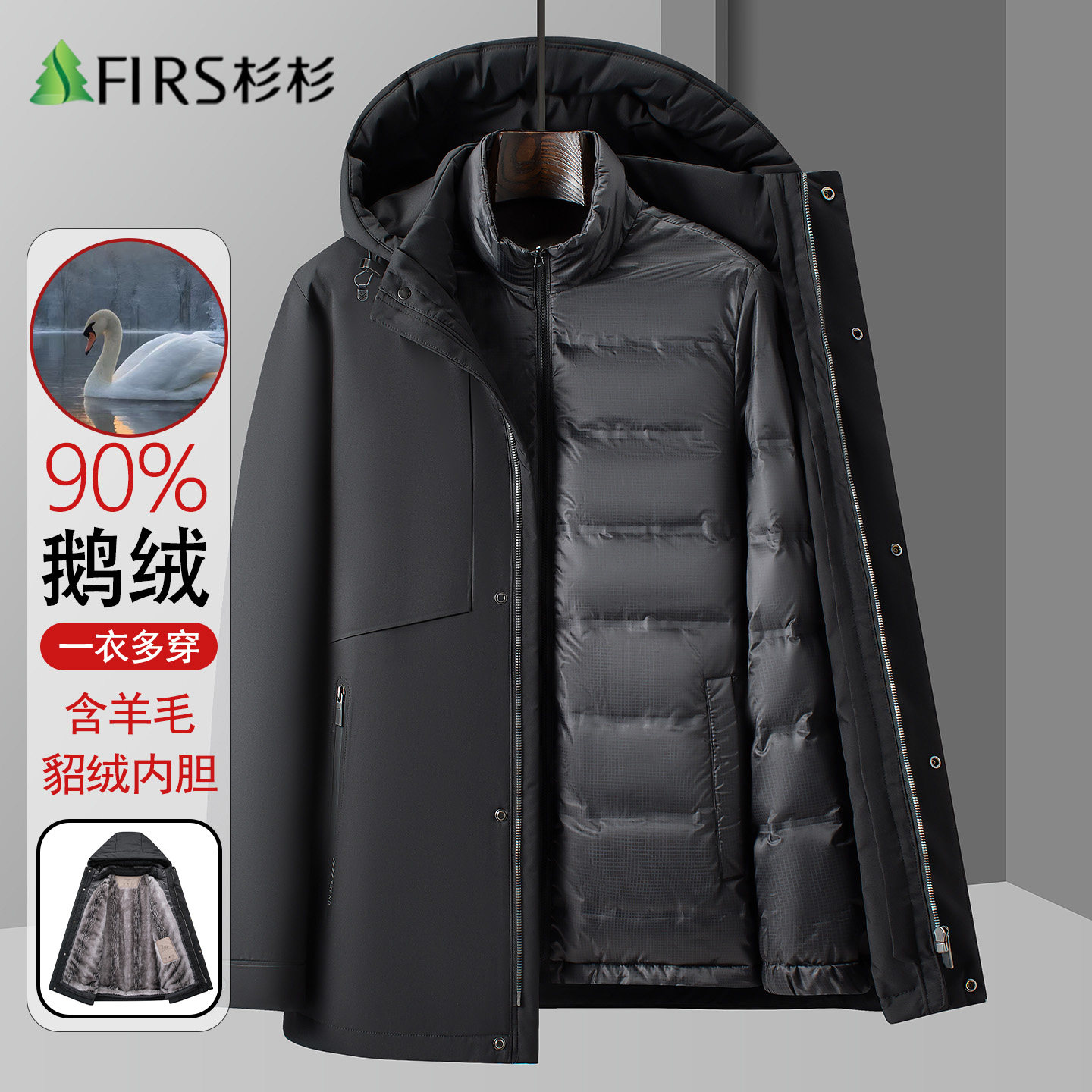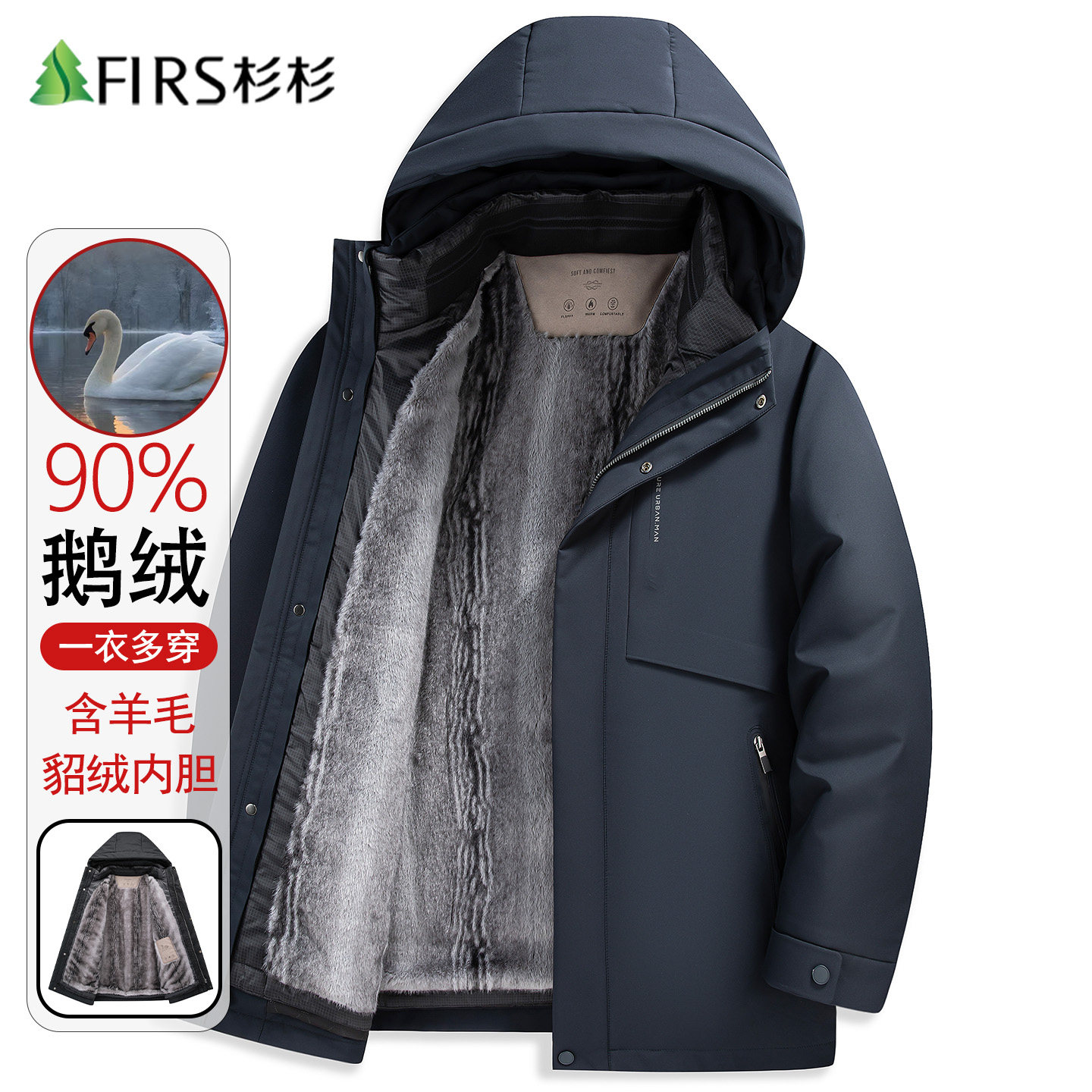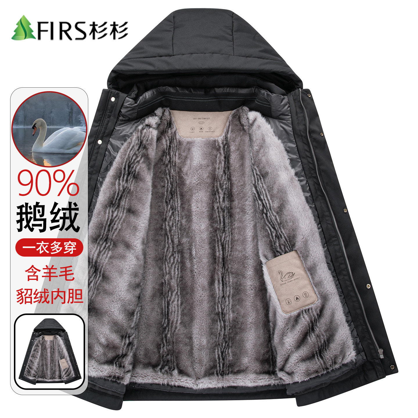 杉杉2025新款冬季鹅绒服男短款脱卸内胆爸爸装保暖外套休闲羽绒服