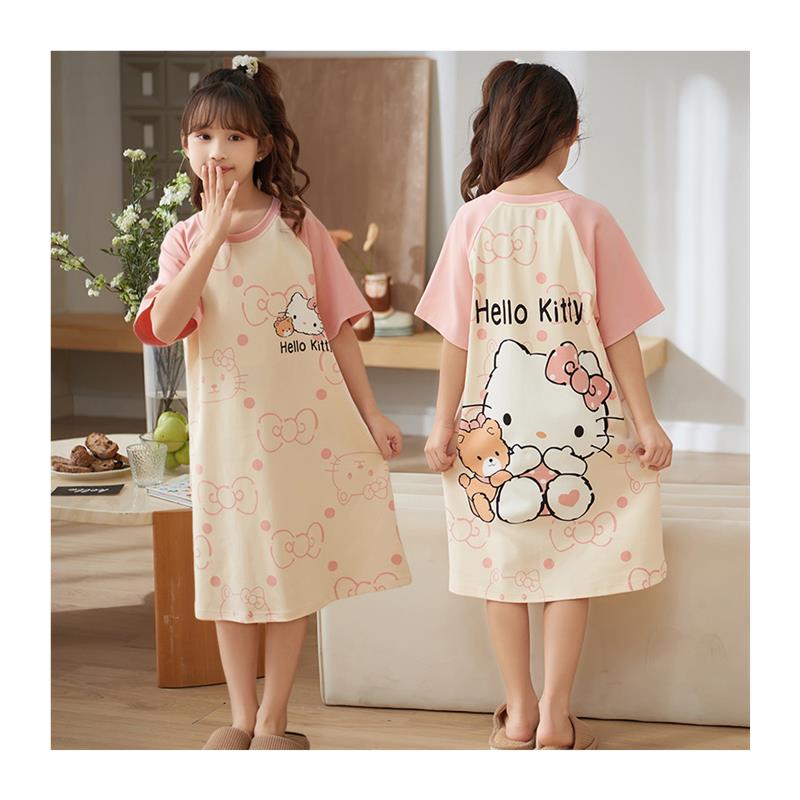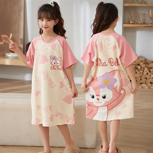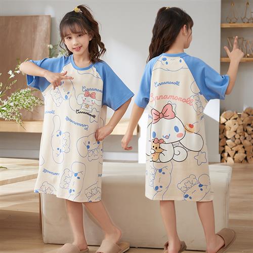 女童睡裙纯棉短袖夏季儿童卡通库洛米睡衣裙中长款裙子女孩家居服