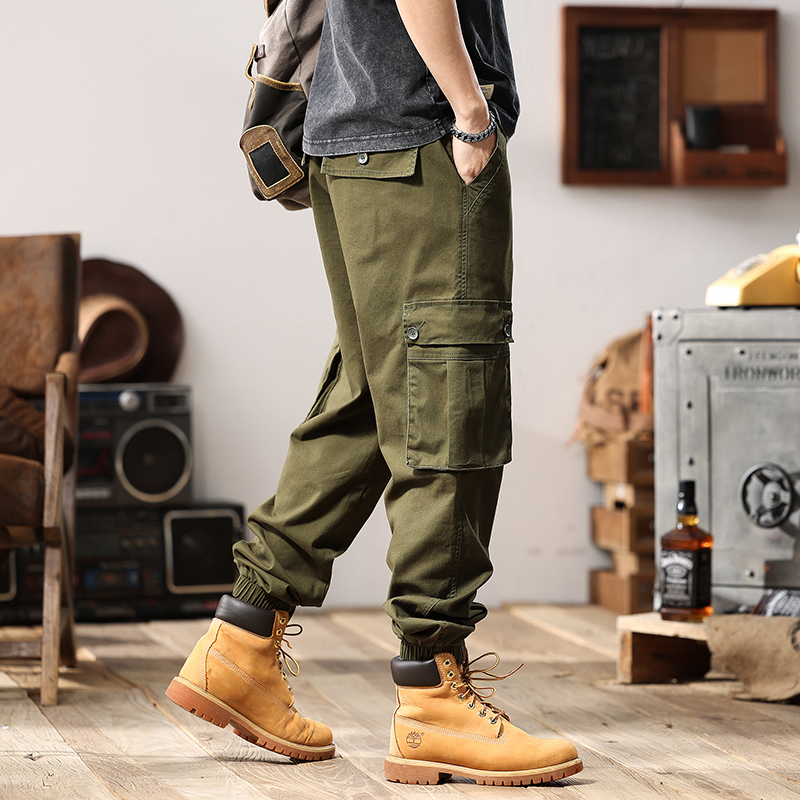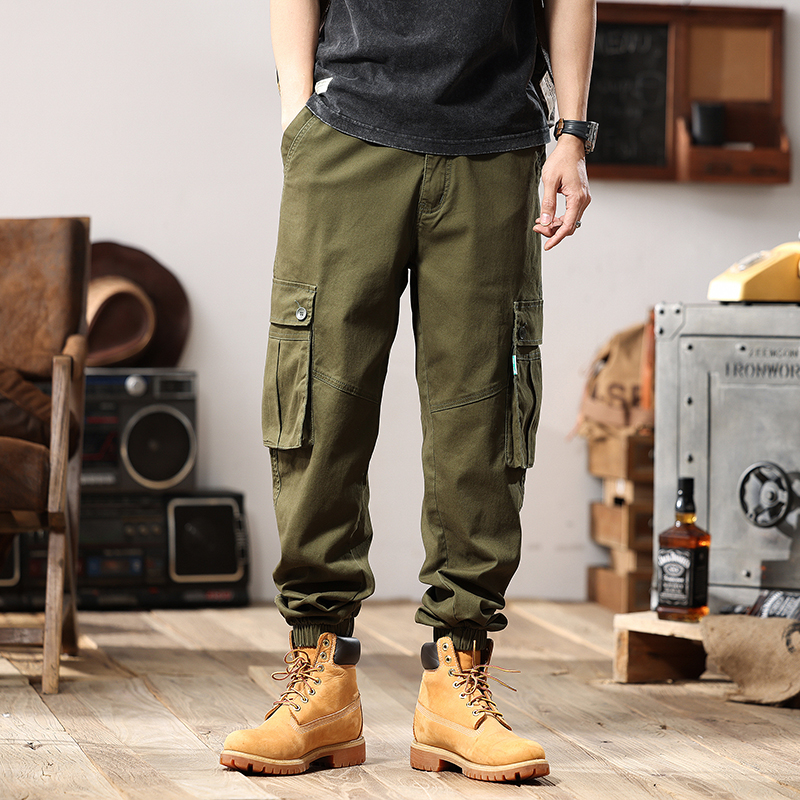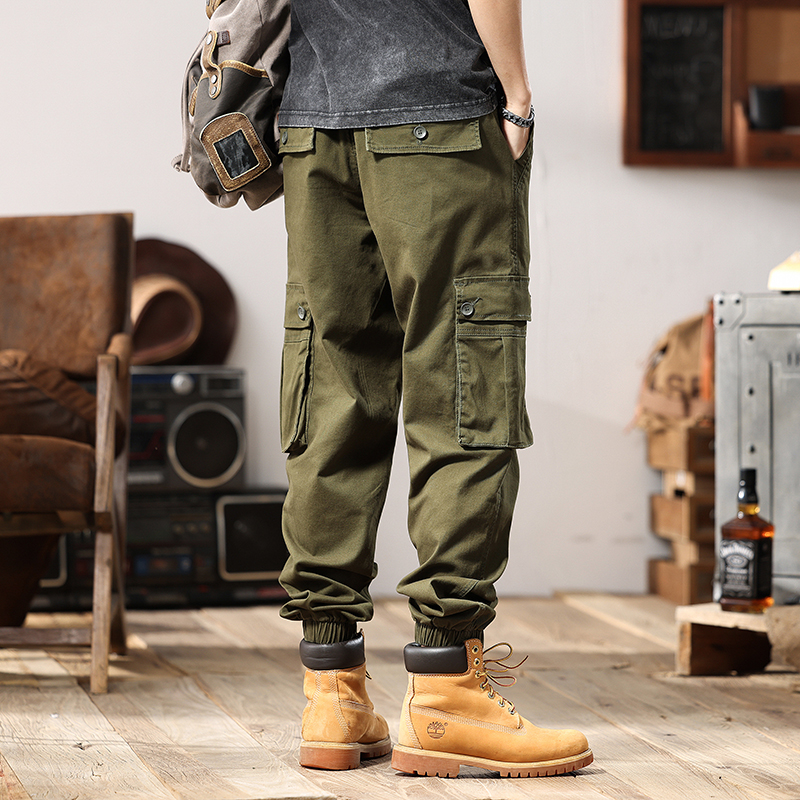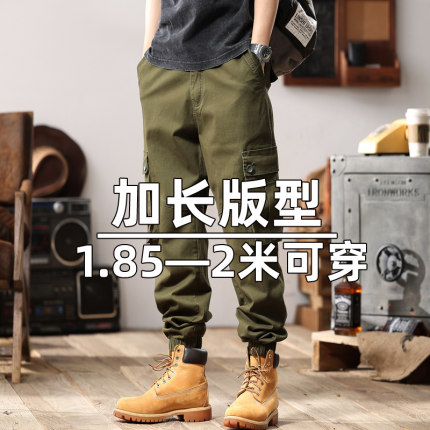 加长版高个子工装裤男大码松紧腰宽松束脚纯棉胖子加肥加大男裤潮