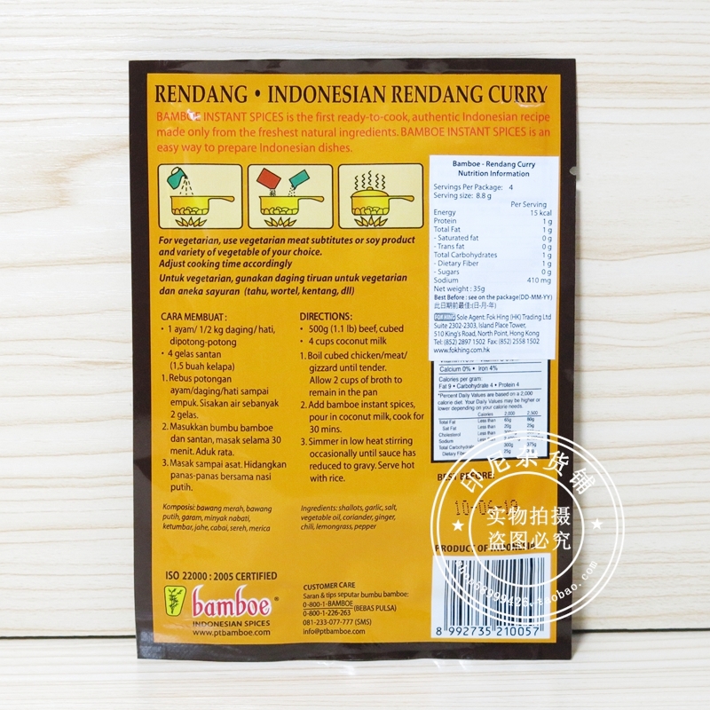 港澳购 印尼Bamboe山竹牌 RENDANG巴东牛肉/印尼干咖喱酱料 35g