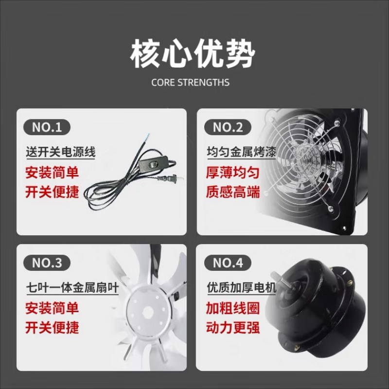 排风扇排气扇厨房家用换气扇大功率抽油烟机强力抽风机排风机商用