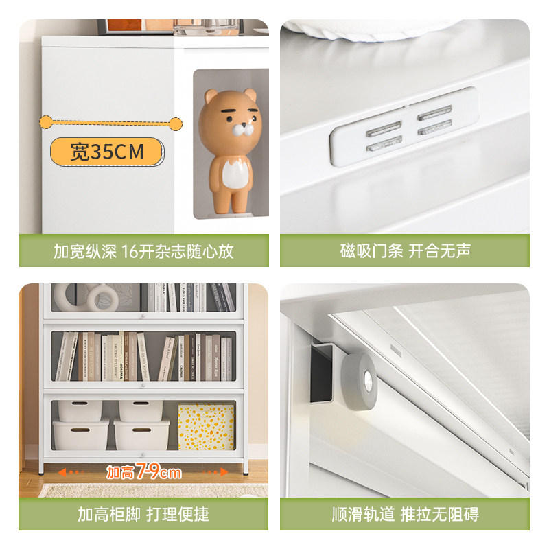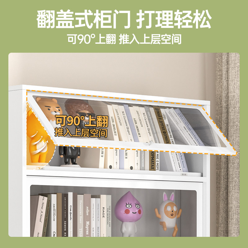 速发家用书柜钢制多层带童防尘落地艺物柜儿门书房书架铁储置物收