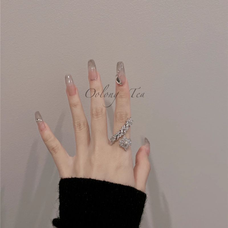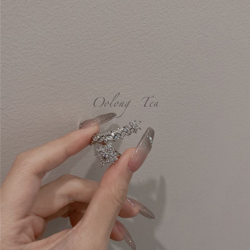 如蝶在野 富家千金繁花水钻戒指气质百搭高级感氛围开口戒可调节