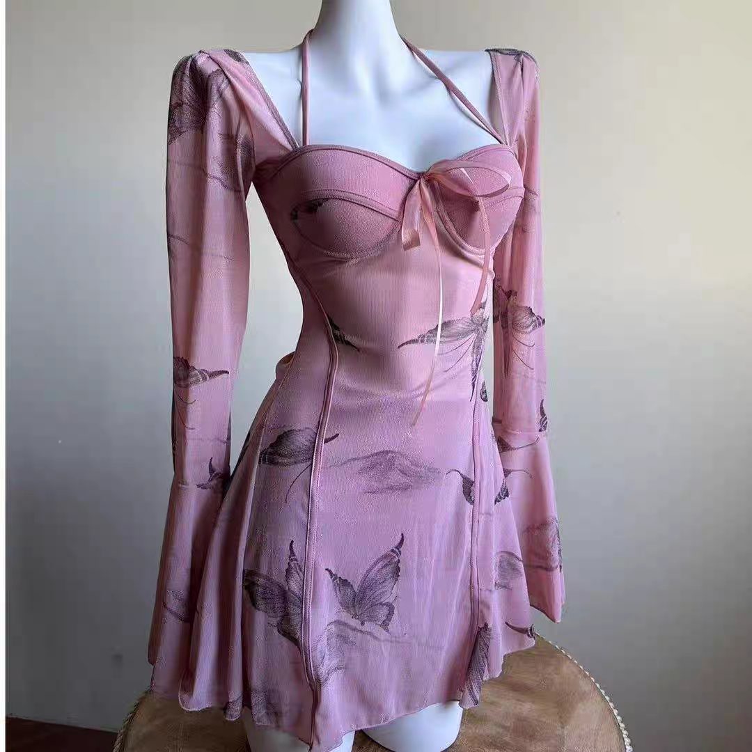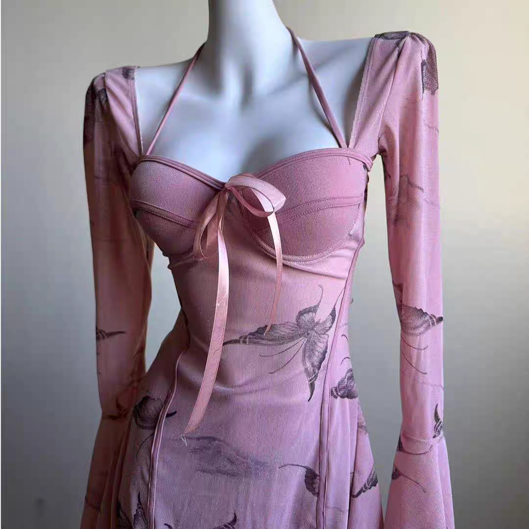 2025新款高级感连体裙式三件套长袖罩衫遮肚显瘦度假温泉保守泳衣