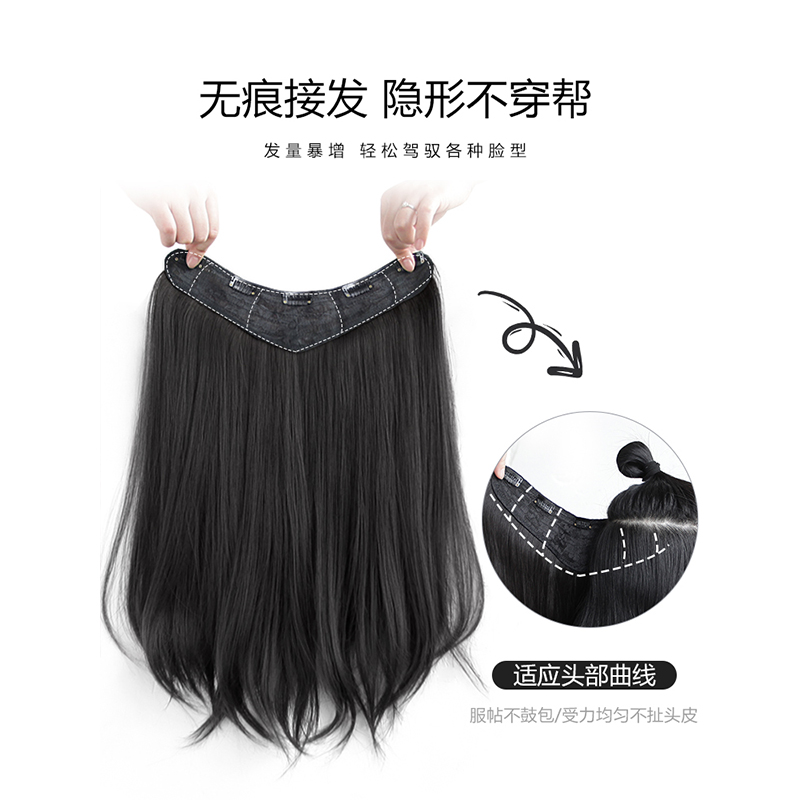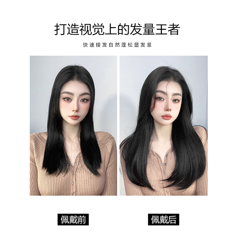真人发假发片女微卷内扣一片式长发接发片蓬松增发量无痕贴片直发