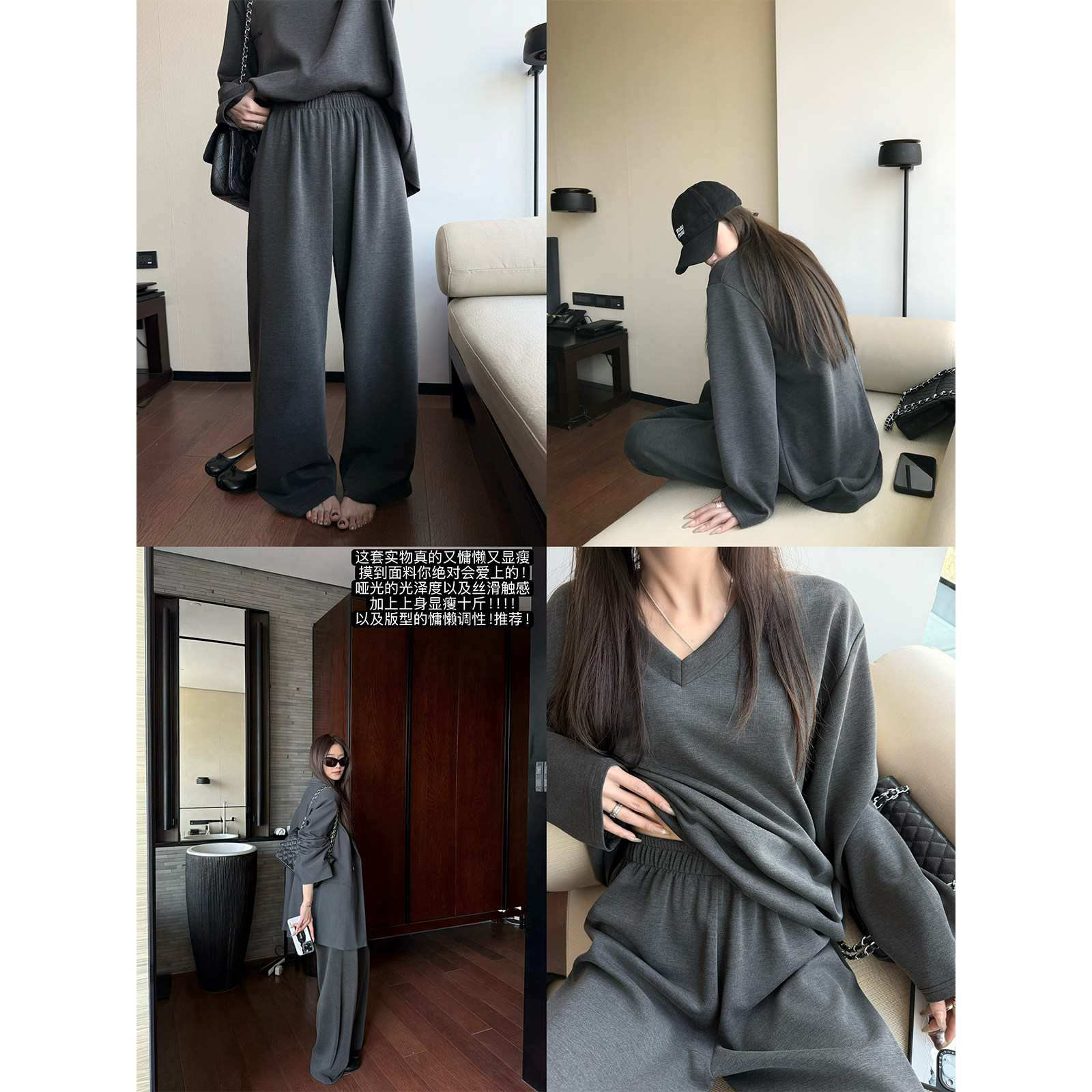 '乳酪布丁'新型天丝套装不易勾丝不掉色显瘦V领宽松上衣阔腿裤女