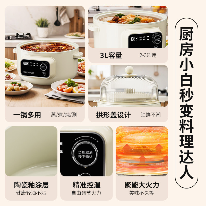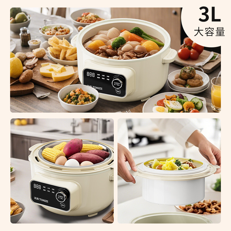 天际 炖/蒸/煮/涮一体锅烹饪锅 电煮锅3L蒸锅家用小型料理锅