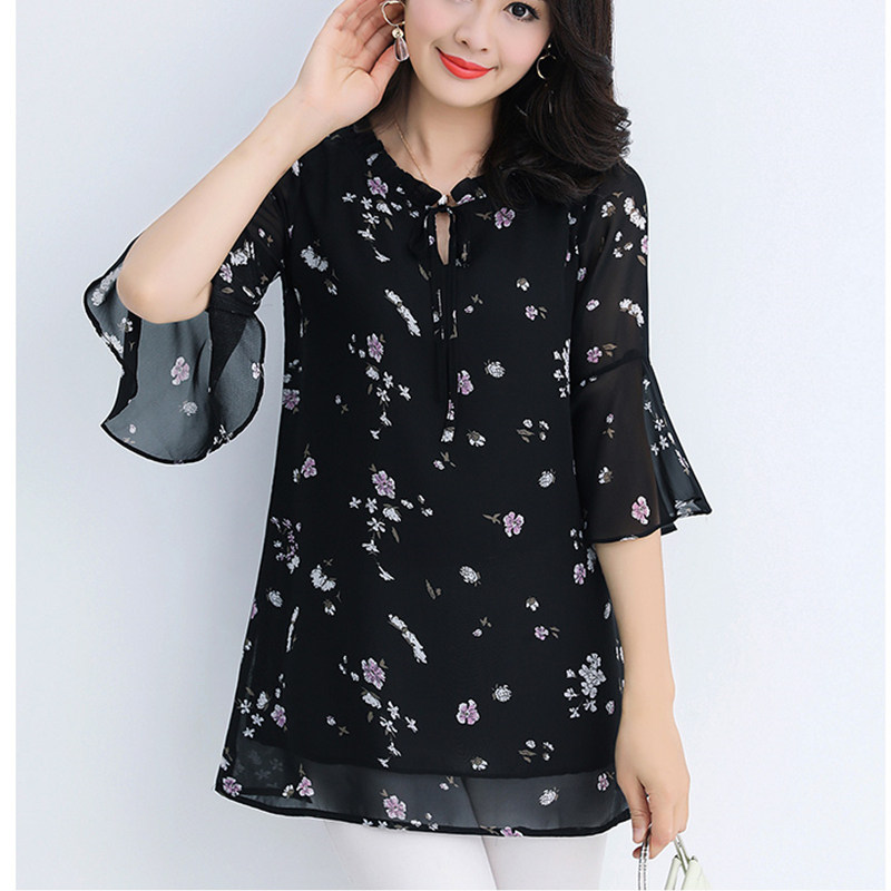 胖MM加肥雪纺衫宽松遮肚大码上衣
