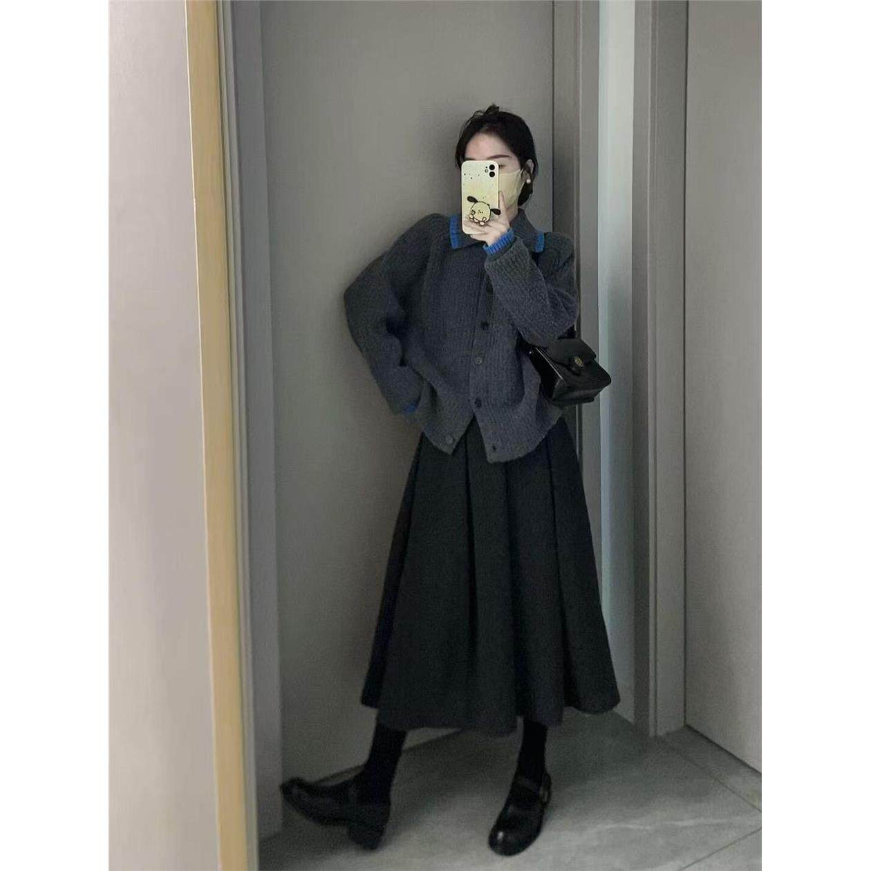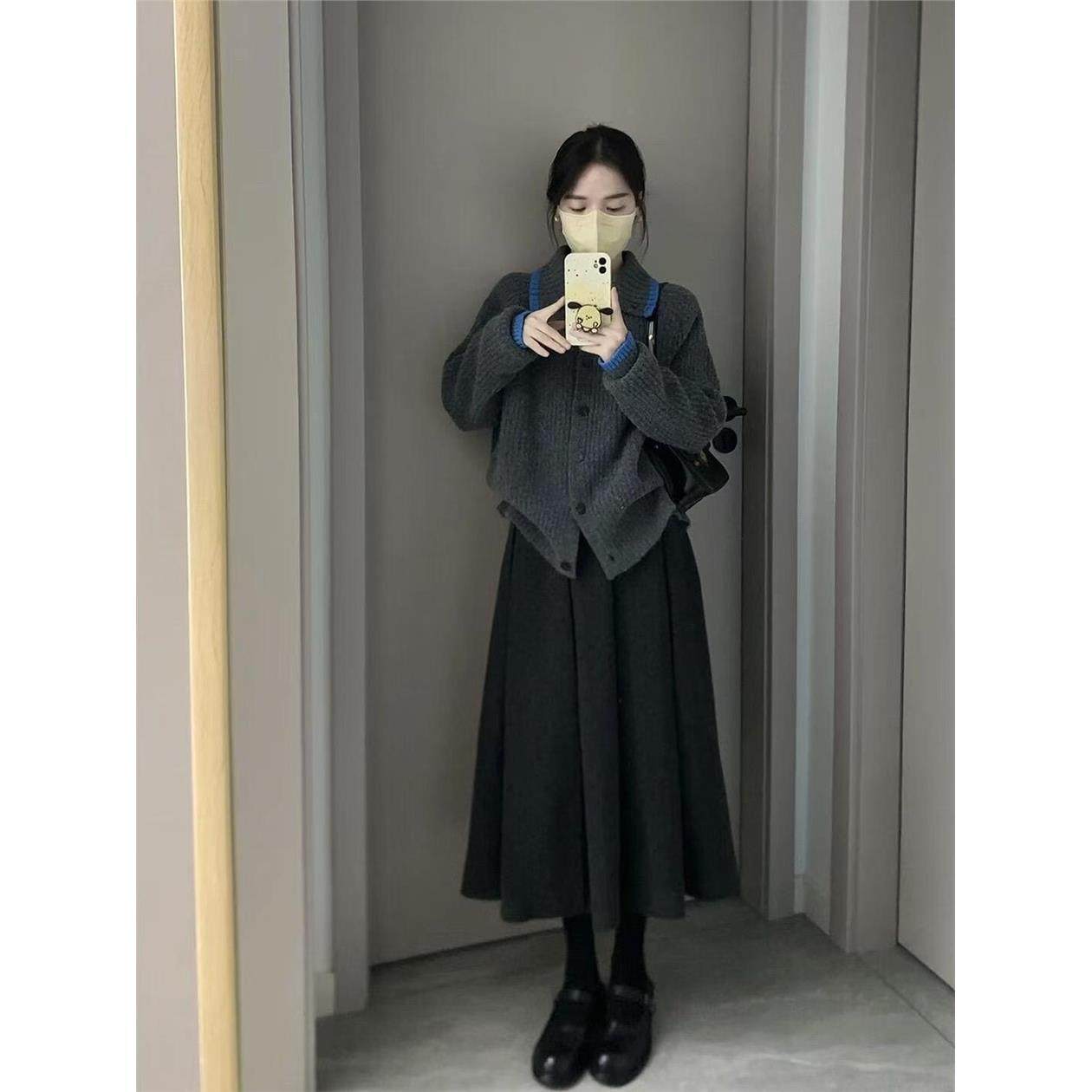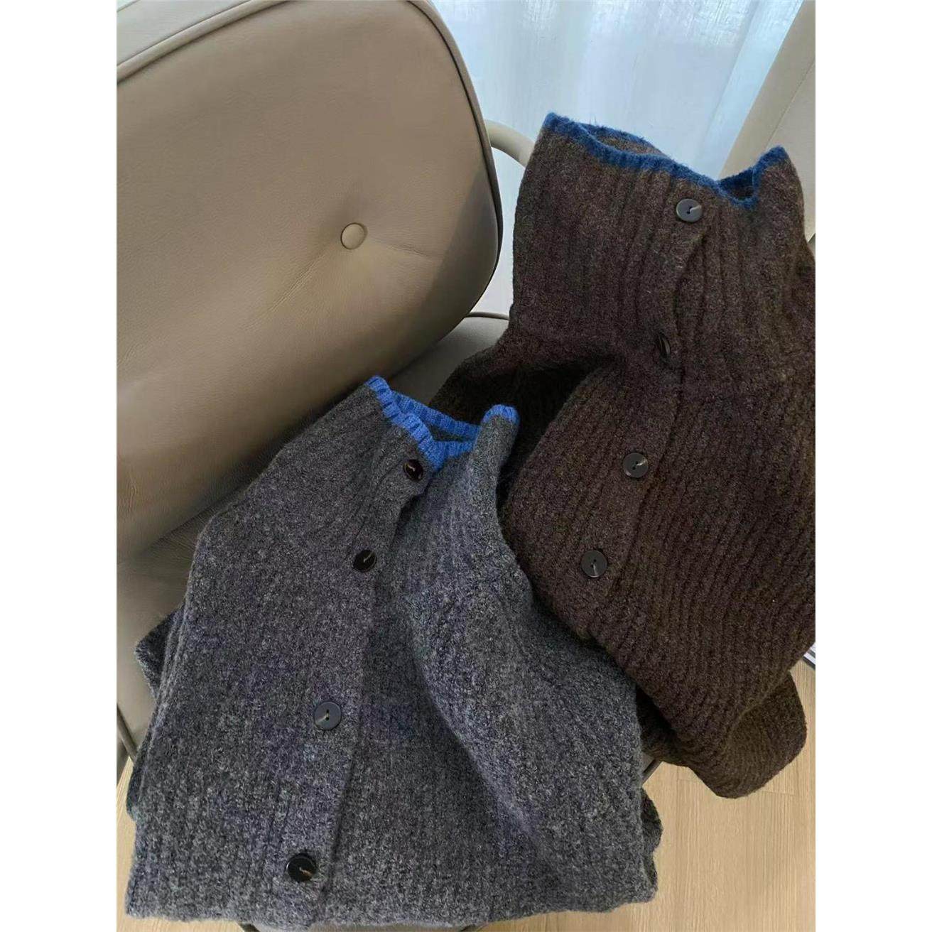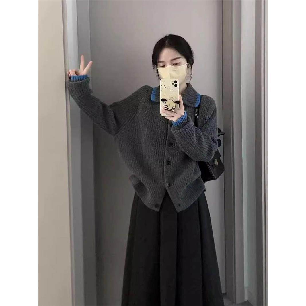 慵懒感灰色高领毛衣外套女秋冬新款撞色软糯宽松针织开衫上衣外套