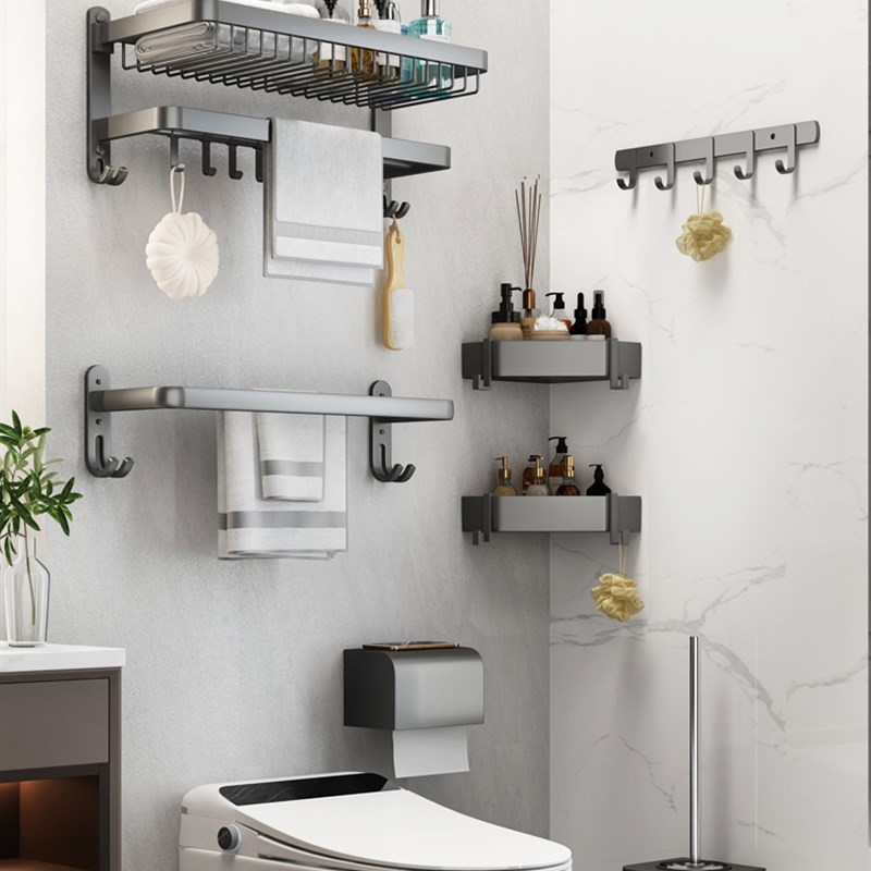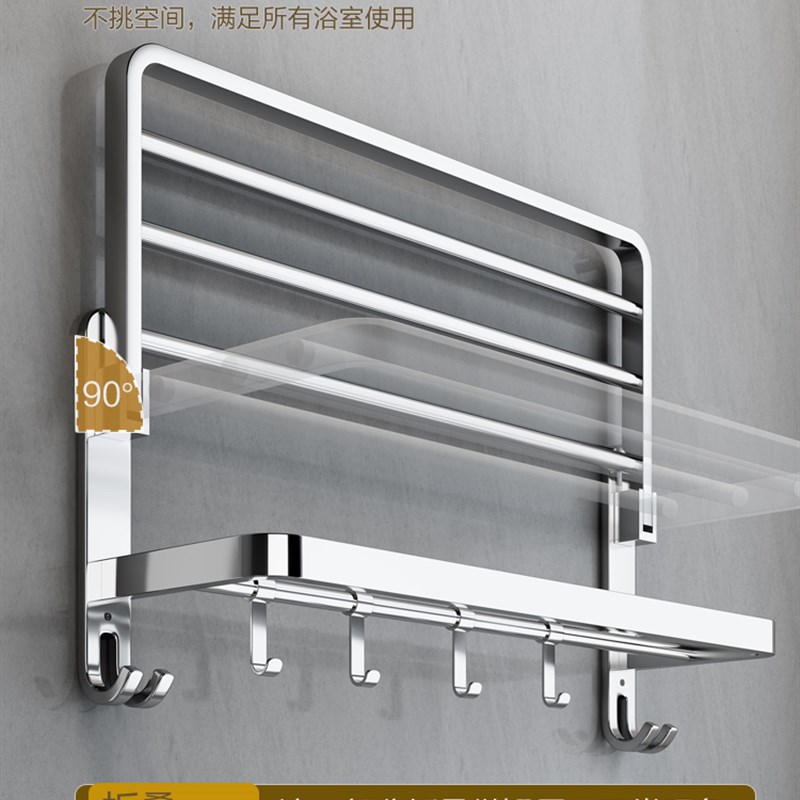毛巾架不锈钢304免打孔卫生间浴巾架挂架浴室置物架卫浴挂件套装