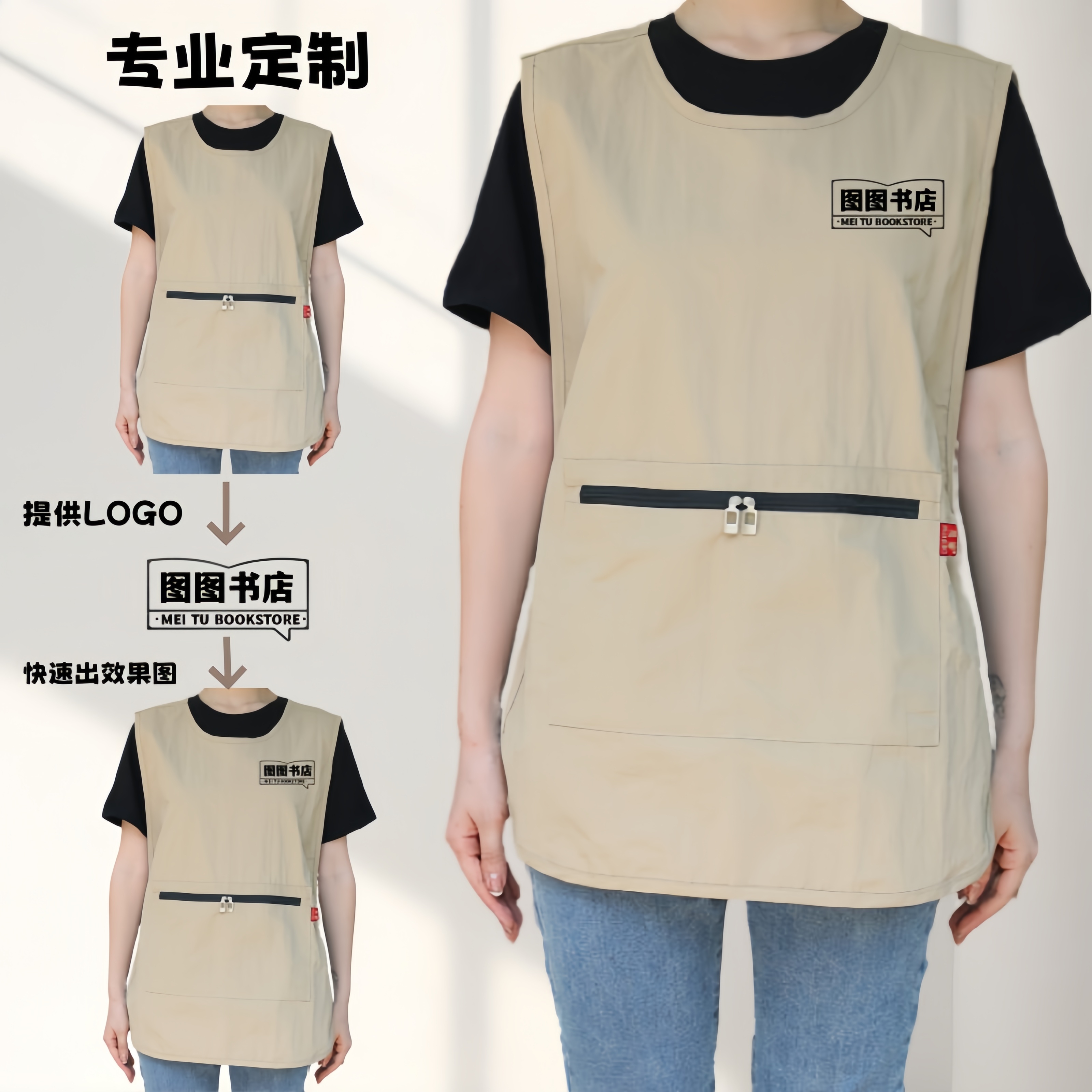 马甲式家用厨房防水防油餐饮蛋糕奶茶咖啡店美发店工作服围裙定制