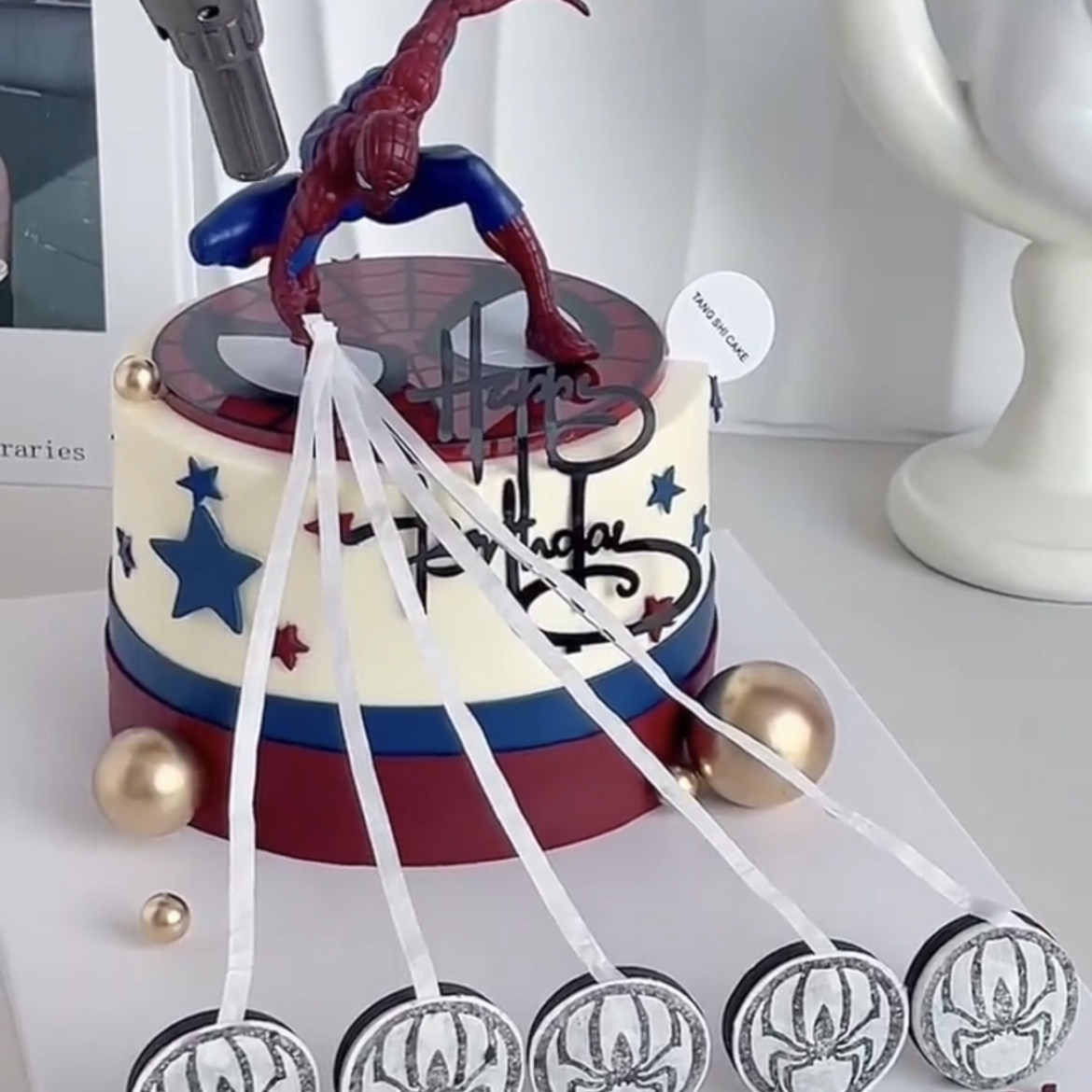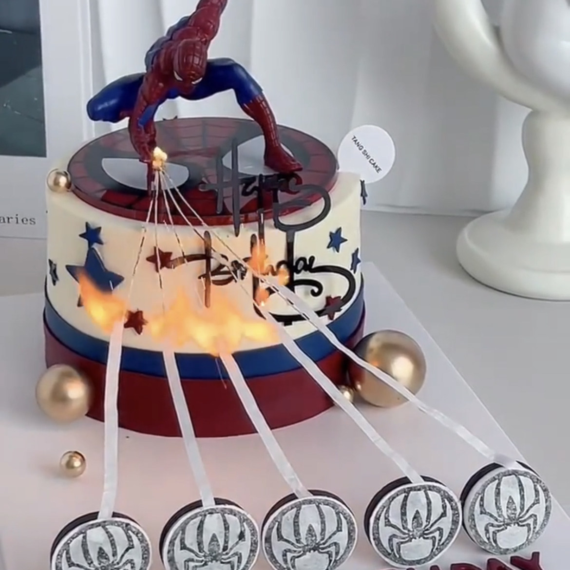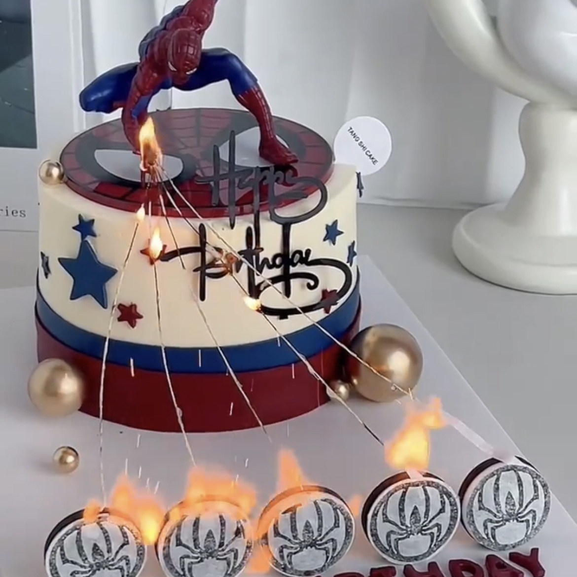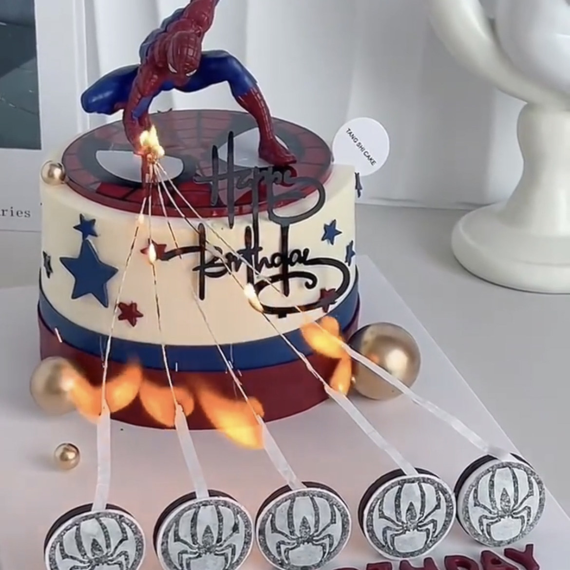 网红ins魔术火焰蜘蛛侠生日蛋糕装饰 蜘蛛侠魔术火焰蜡烛蛋糕装扮