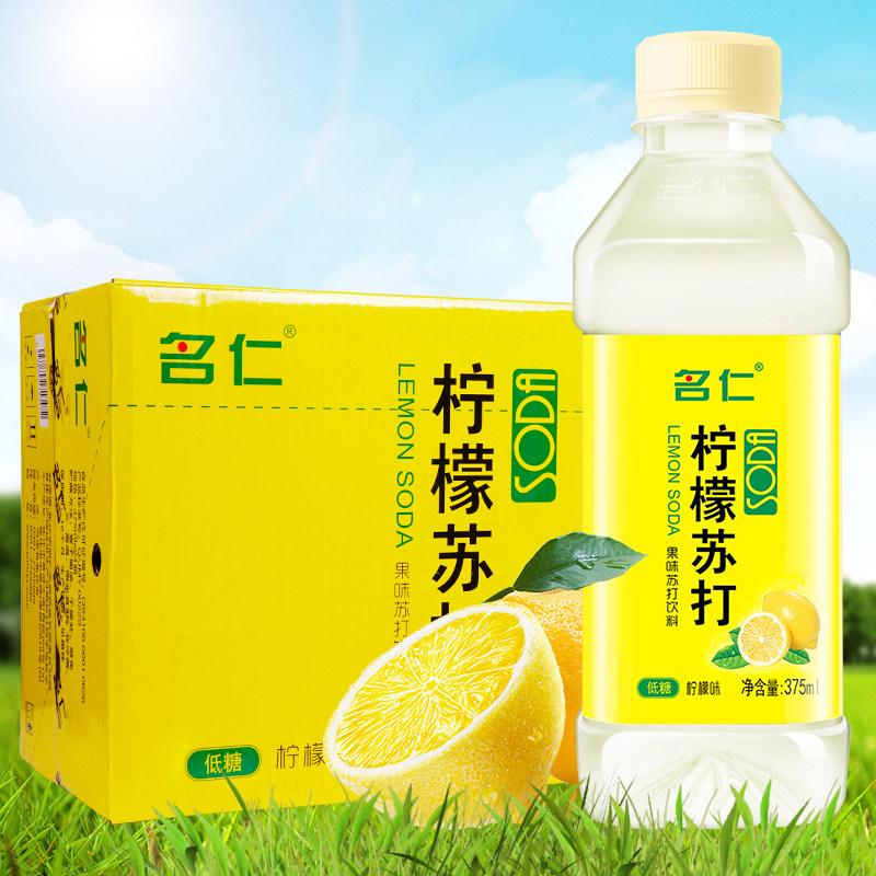 名仁苏打水375ml*24苏打饮料碱性柠檬果味饮料小苏打饮用水名人