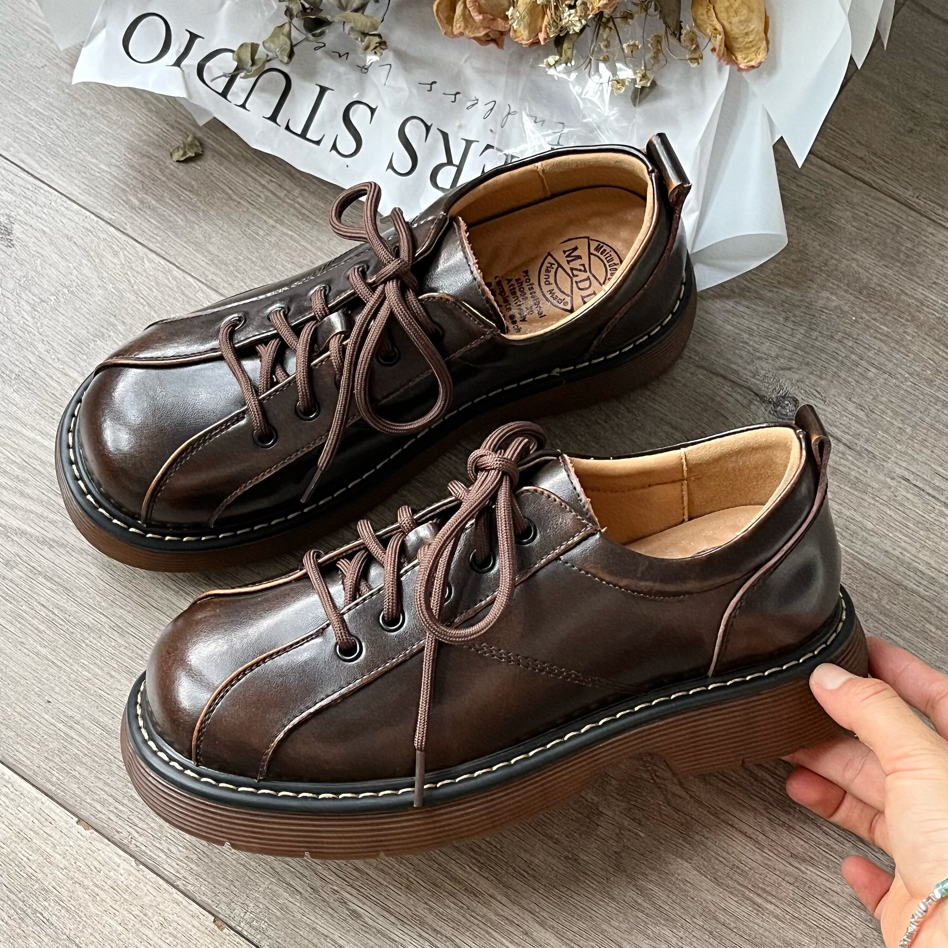 「没准懂你 」 复古感满满~秋冬日系复古单鞋圆头厚底小皮鞋女