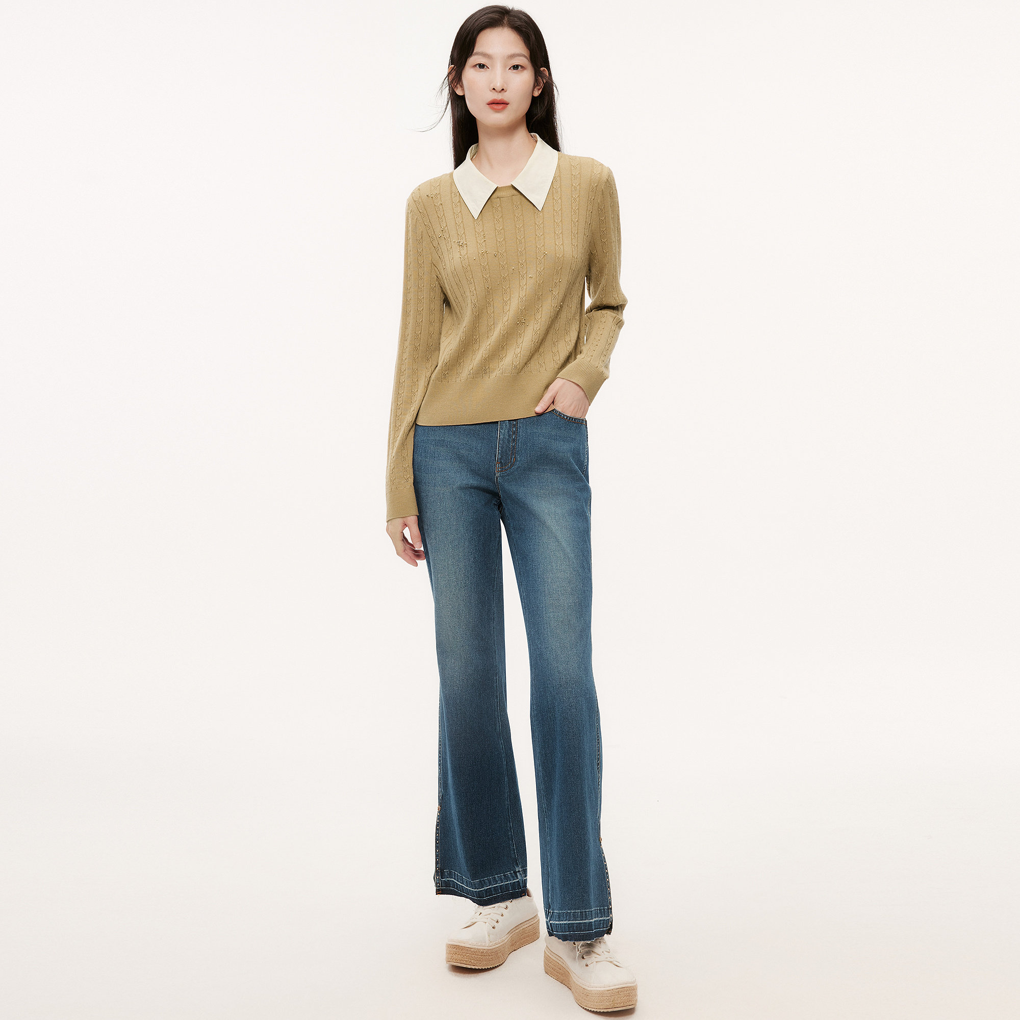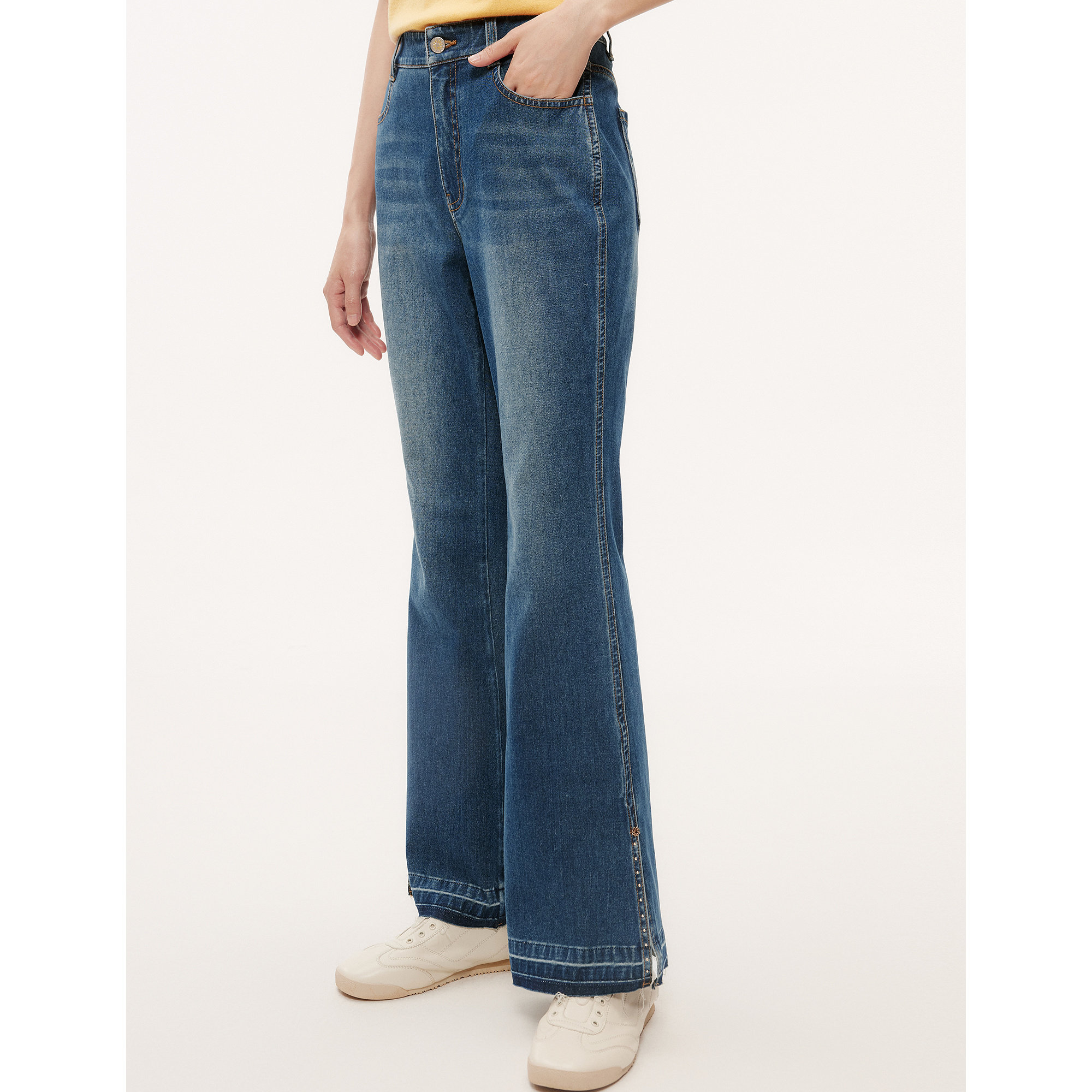 【新疆长绒棉】珂思商场同款时尚开叉喇叭牛仔裤女2025秋季新款