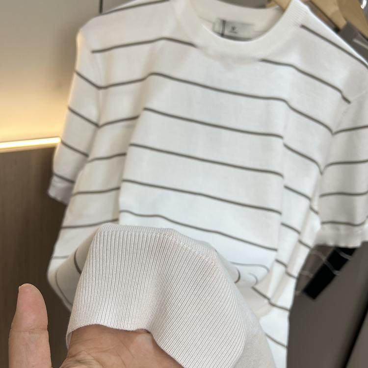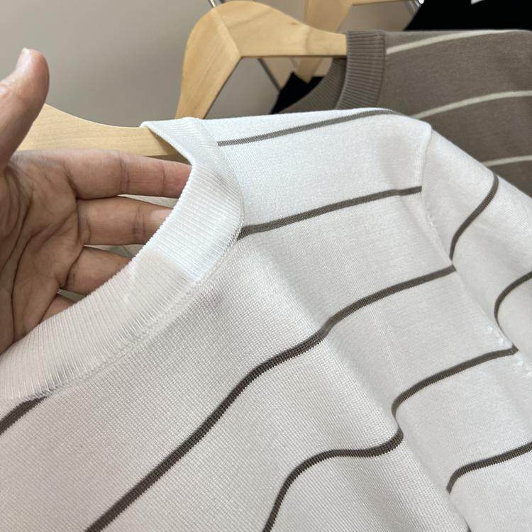 千元奢华+气质版!夏季男士外贸舒适休闲层次针织条纹圆领短袖T恤