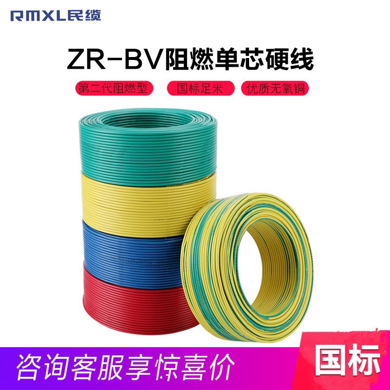 人民电线阻燃bv单芯硬线家用家装10电缆国标2.5 4 6平方铜芯铜线