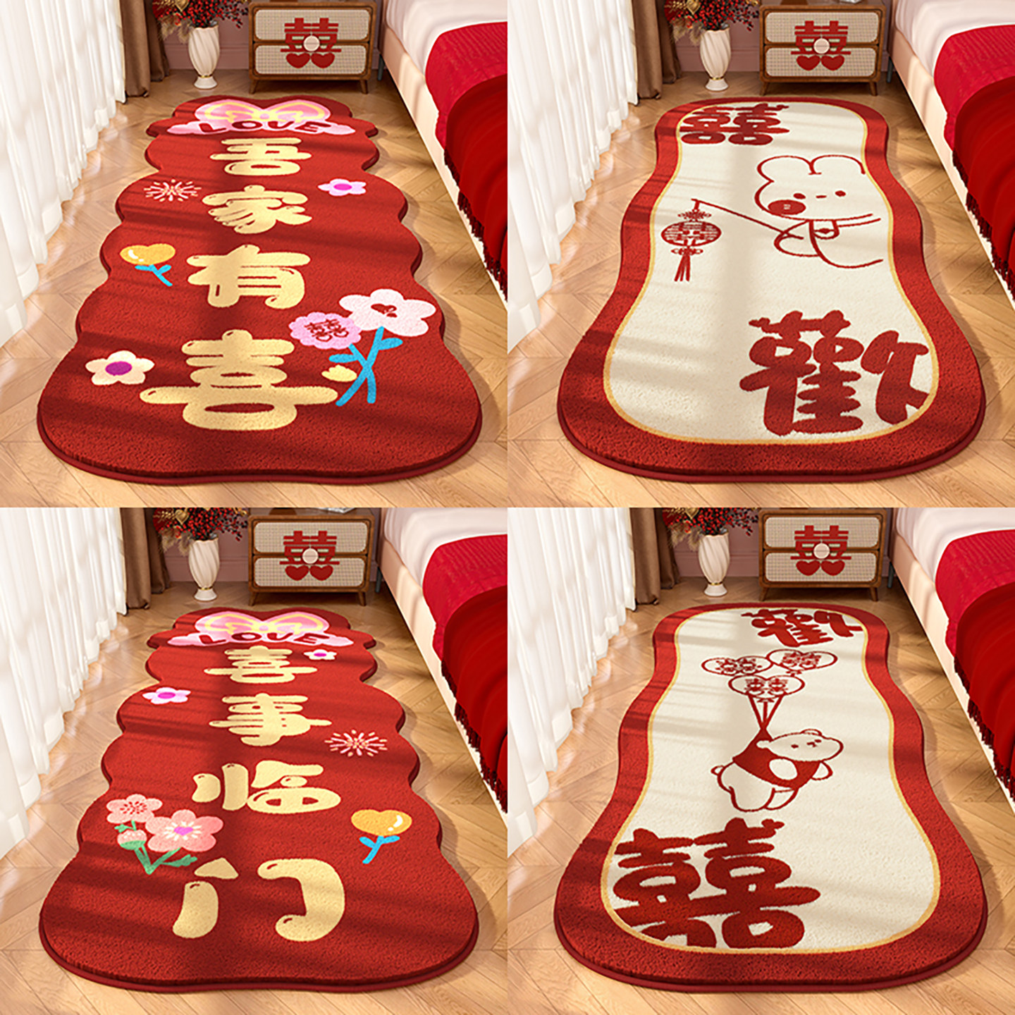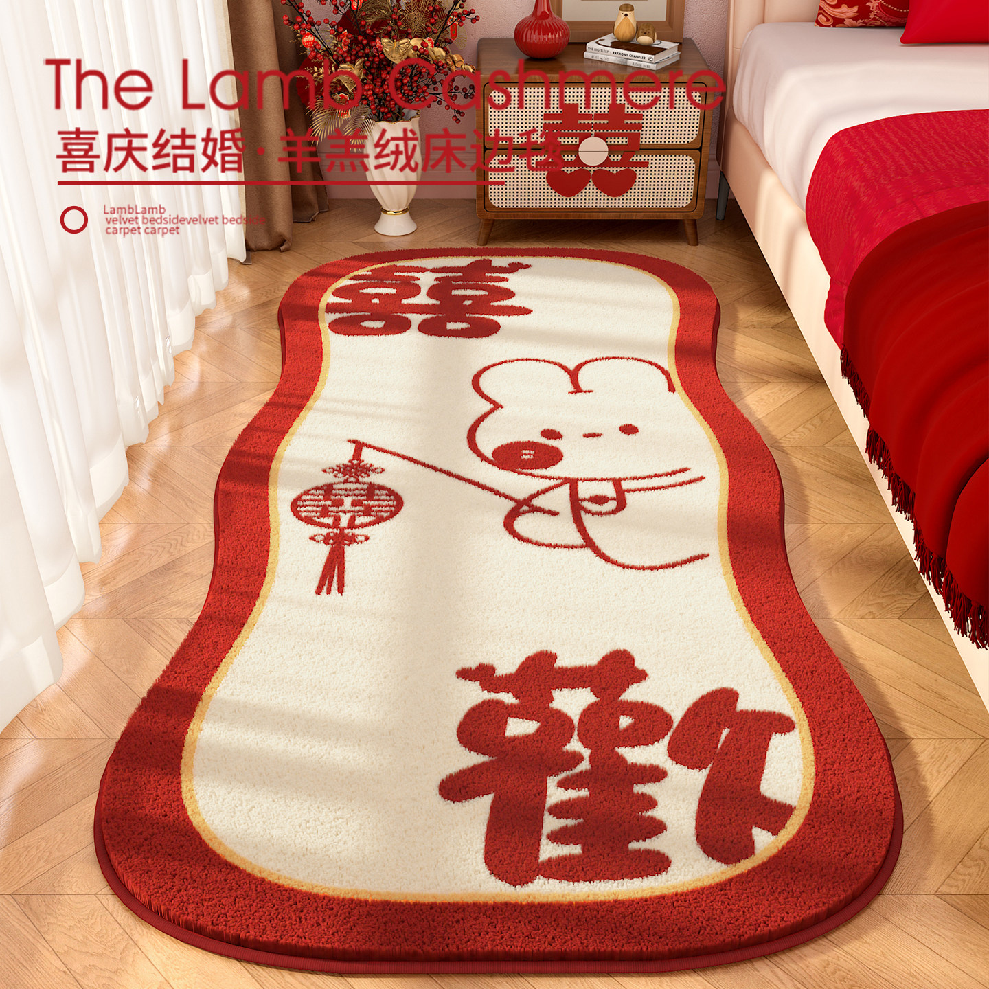 结婚新婚卧室床前婚房地毯红色喜庆加厚毛绒床边毯定制地垫脚垫子