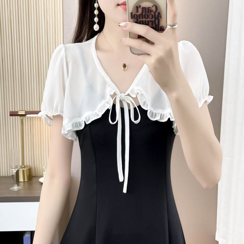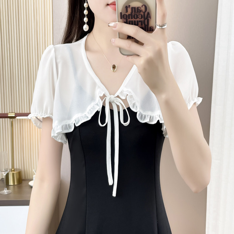 雪纺小坎肩女短款薄外套系带小披肩夏季配吊带裙的小外套短袖罩衫