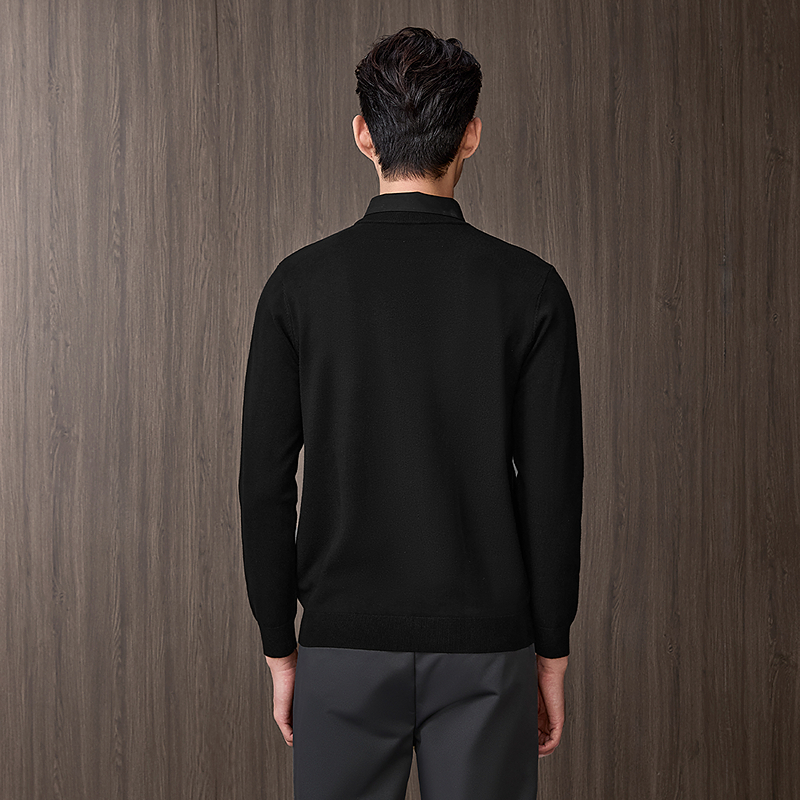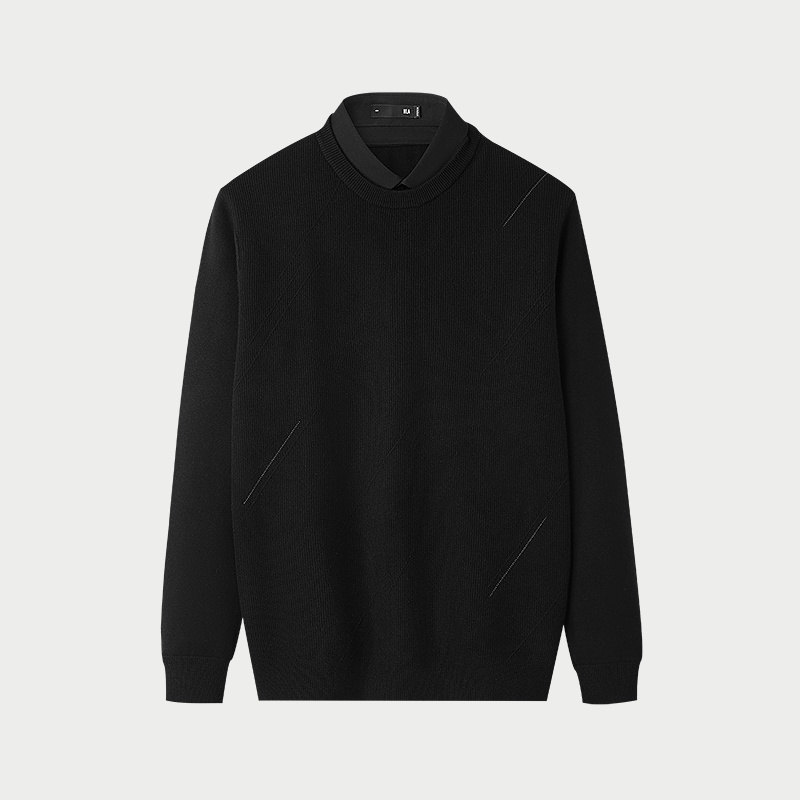 HLA/海澜之家假两件双领针织衫25春夏新圆领商务线条提花毛衣男