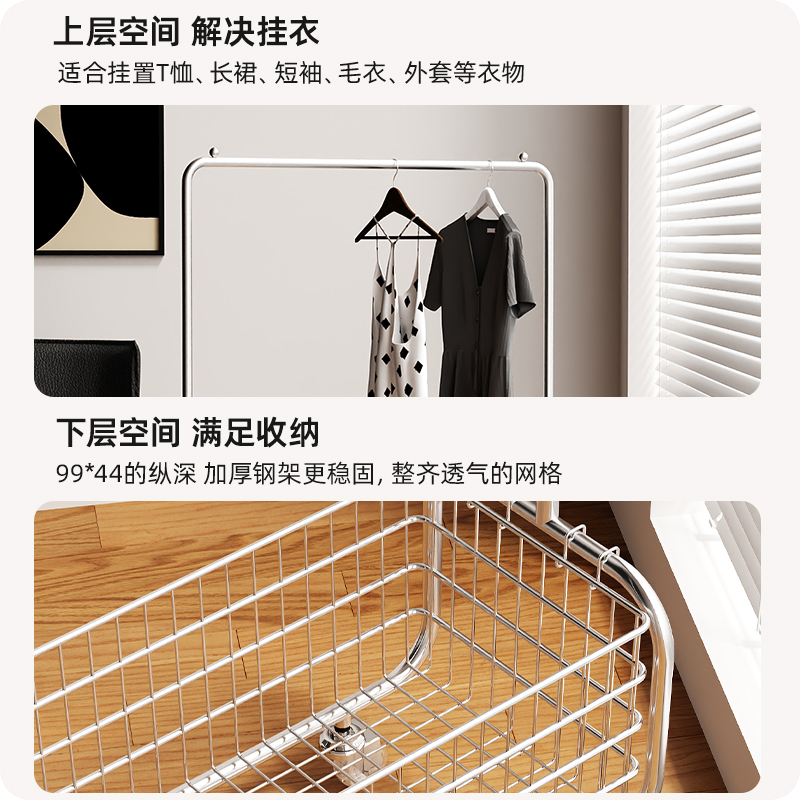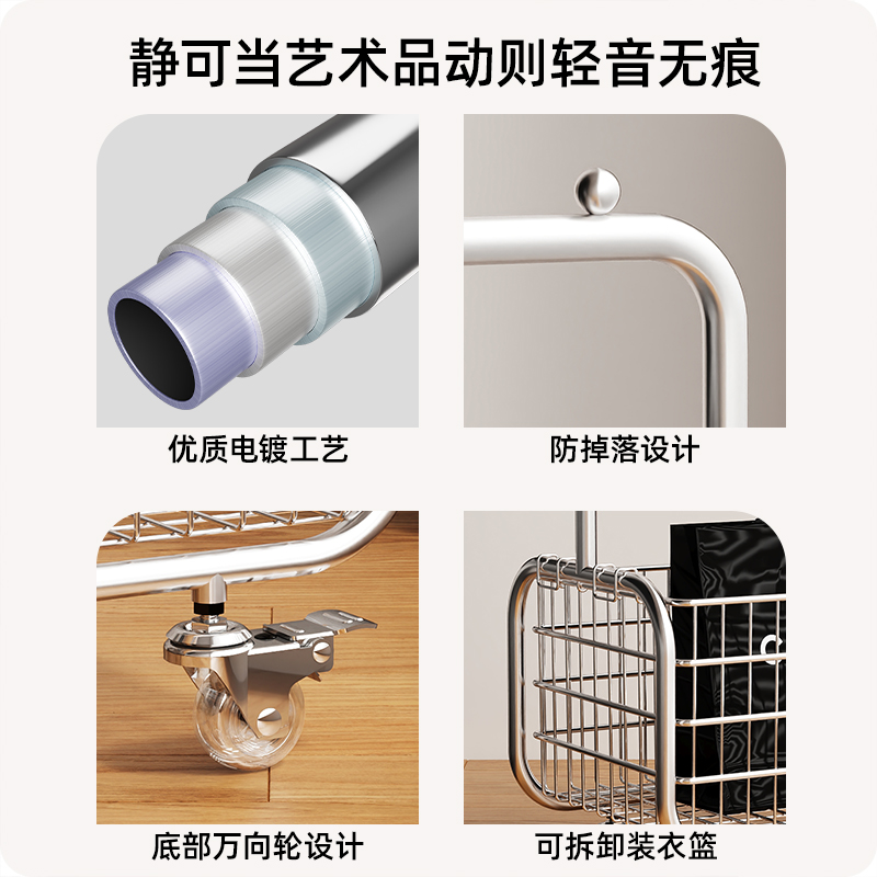卧室落地挂衣架家用可移动金属z铁艺衣帽架网红轻奢收纳不锈钢衣