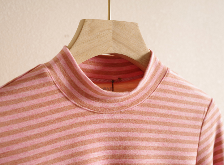 意大莱女士半高领蚕丝德绒条纹加厚打底贴身保暖内衣单上衣秋衣