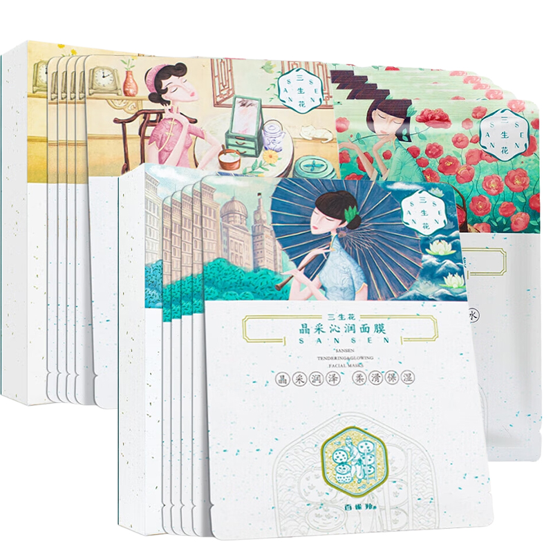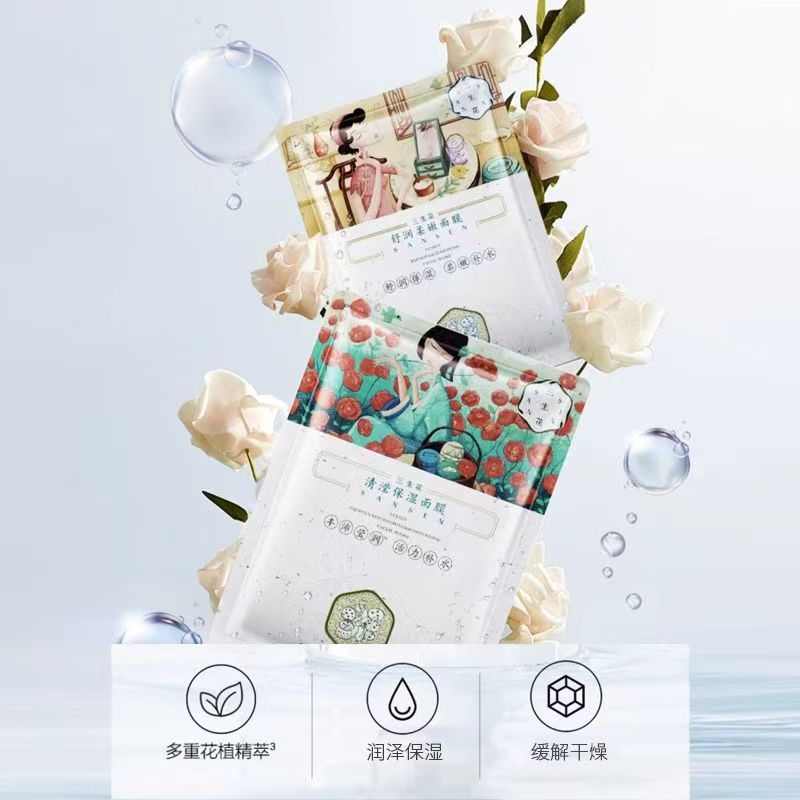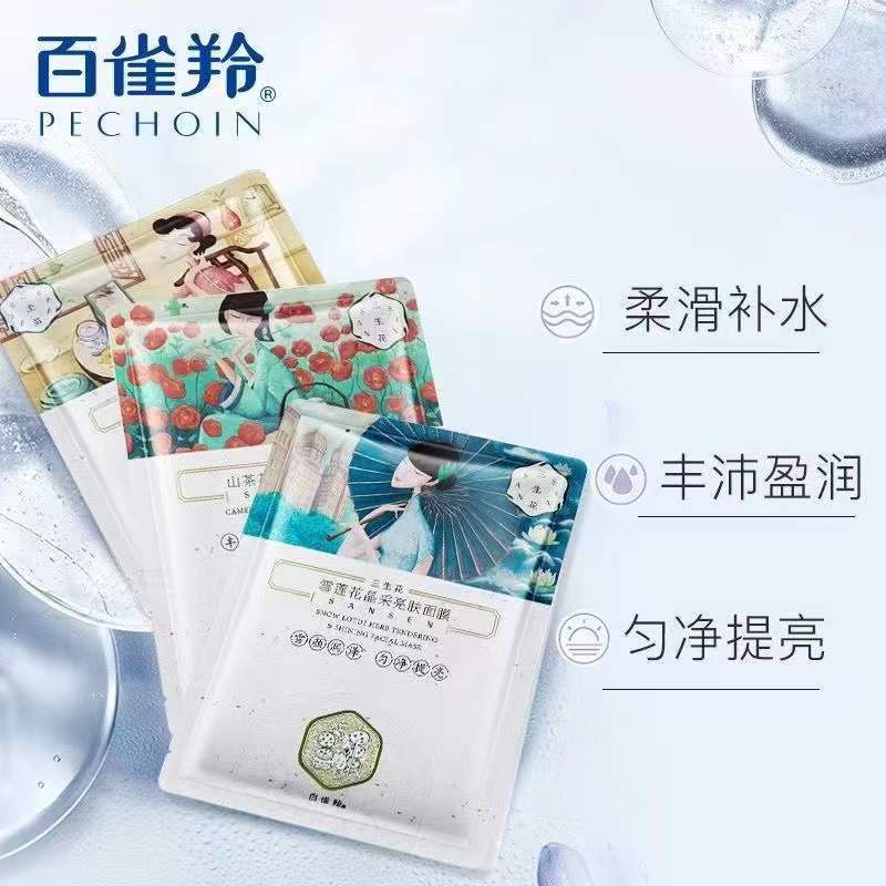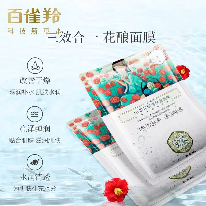 百雀羚三生花面膜山茶补水保湿收缩毛孔舒润金盏服帖面膜女