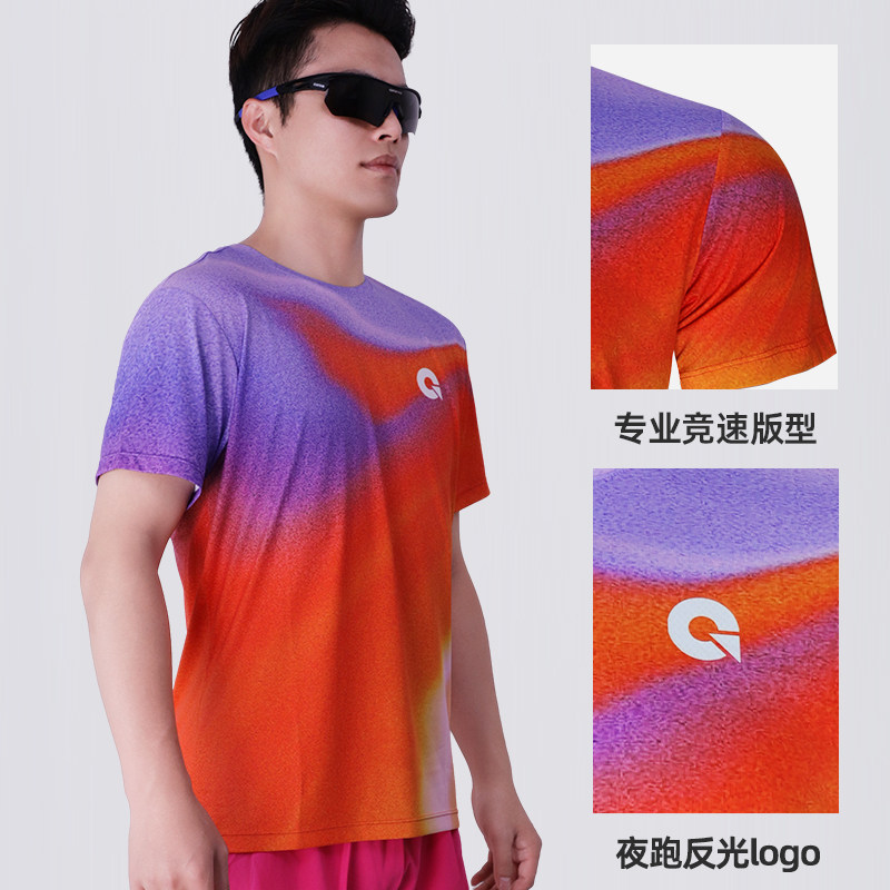 新品果凡轻薄透气速干运动上衣男女款炫彩体考马拉松跑步短袖T恤