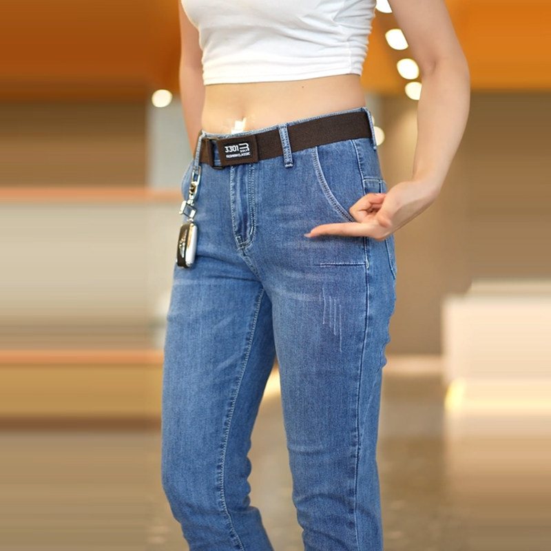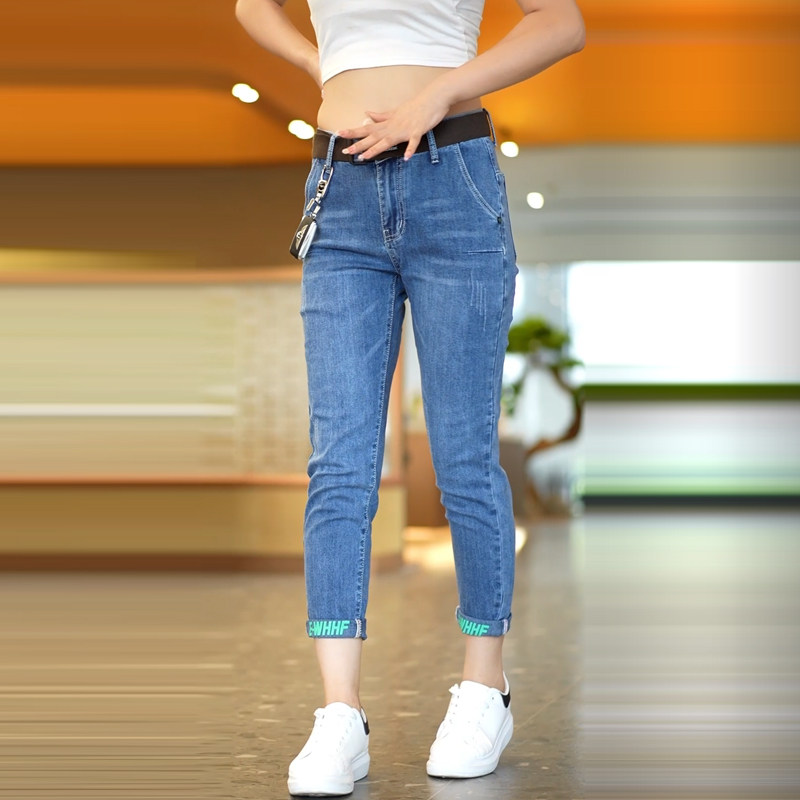 九分牛仔裤男士2024夏季新款修身小脚休闲潮流印花9分小直筒薄款