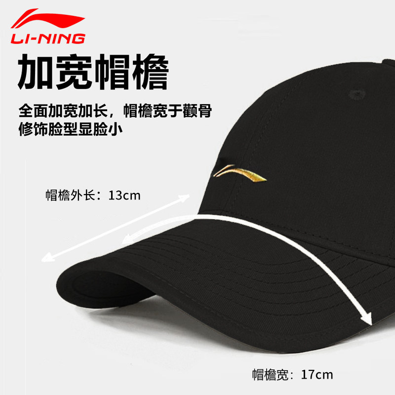 李宁棒球帽男女同款2025新款遮阳防晒鸭舌帽大头围显脸小黑色帽子