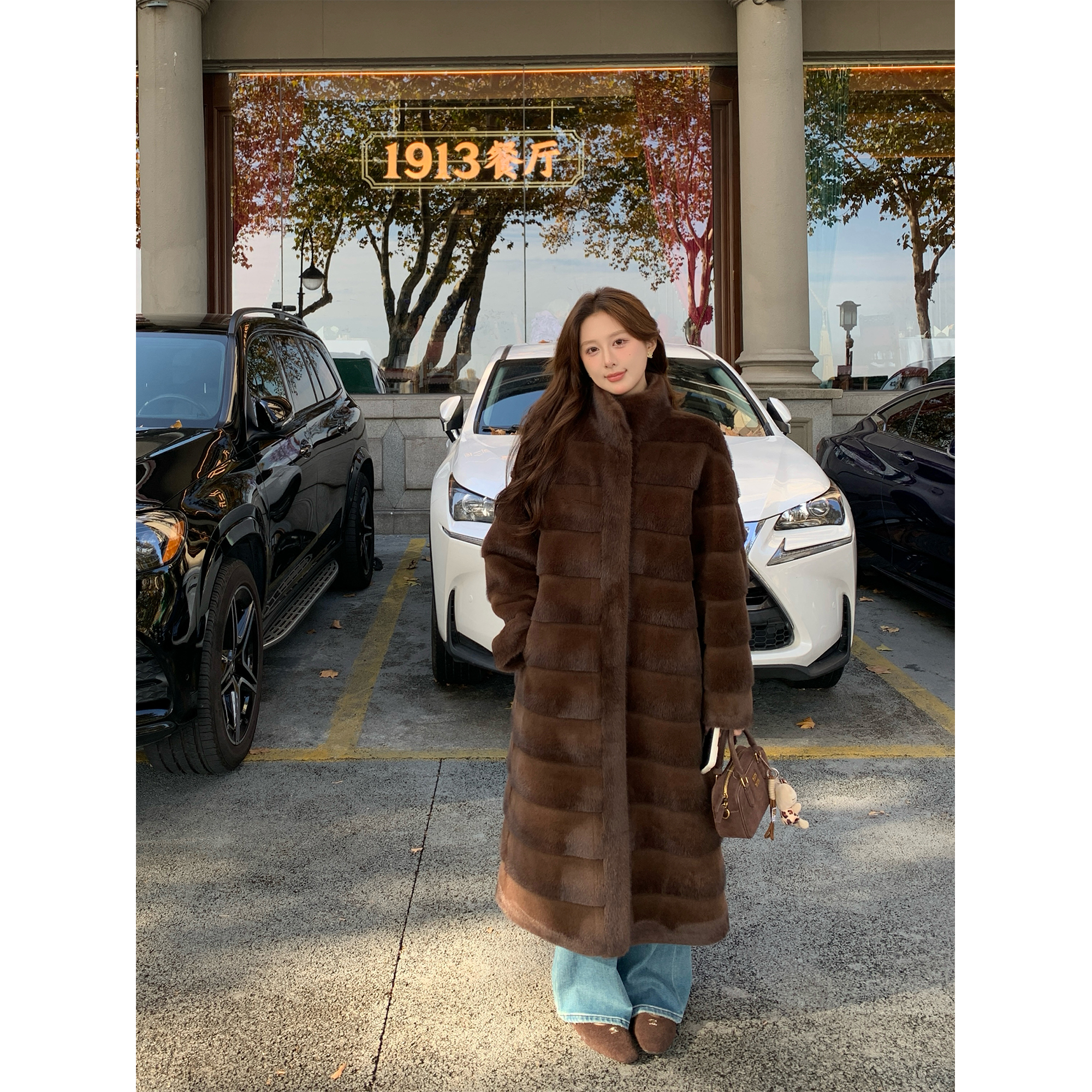 夏天家贵气轻奢长款仿水貂毛环保皮草毛毛外套女秋冬皮毛一体大衣