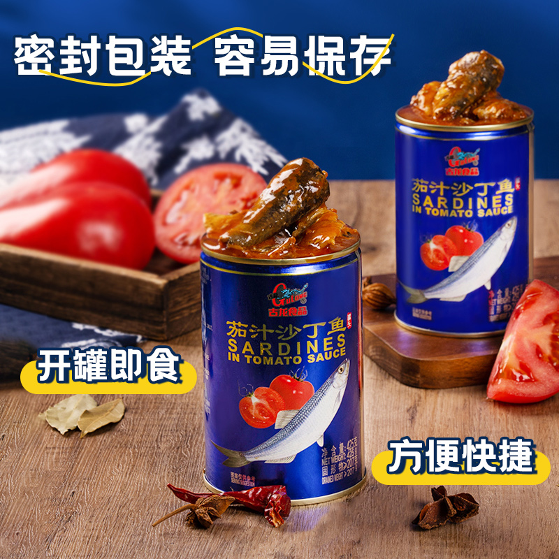 古龙食品茄汁沙丁鱼罐头酸甜拌饭熟食即食番茄鱼海鲜批发425g*5