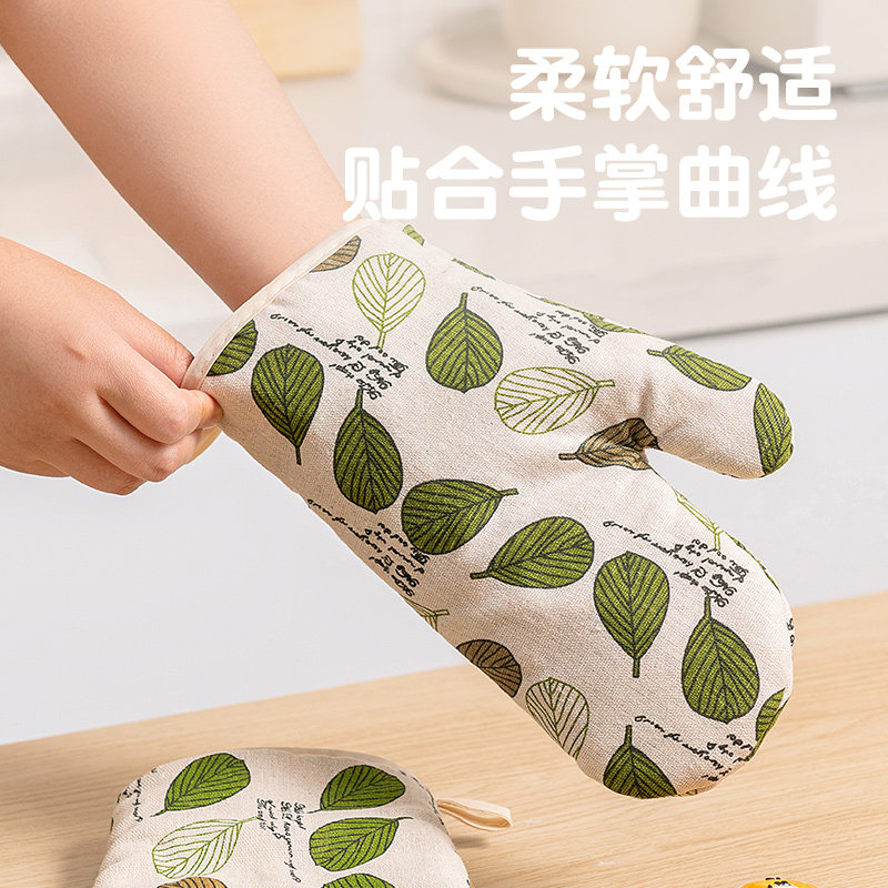 酷斯特棉麻隔热手套加厚耐高温厨房烤箱微波炉烘焙防滑防烫手套女